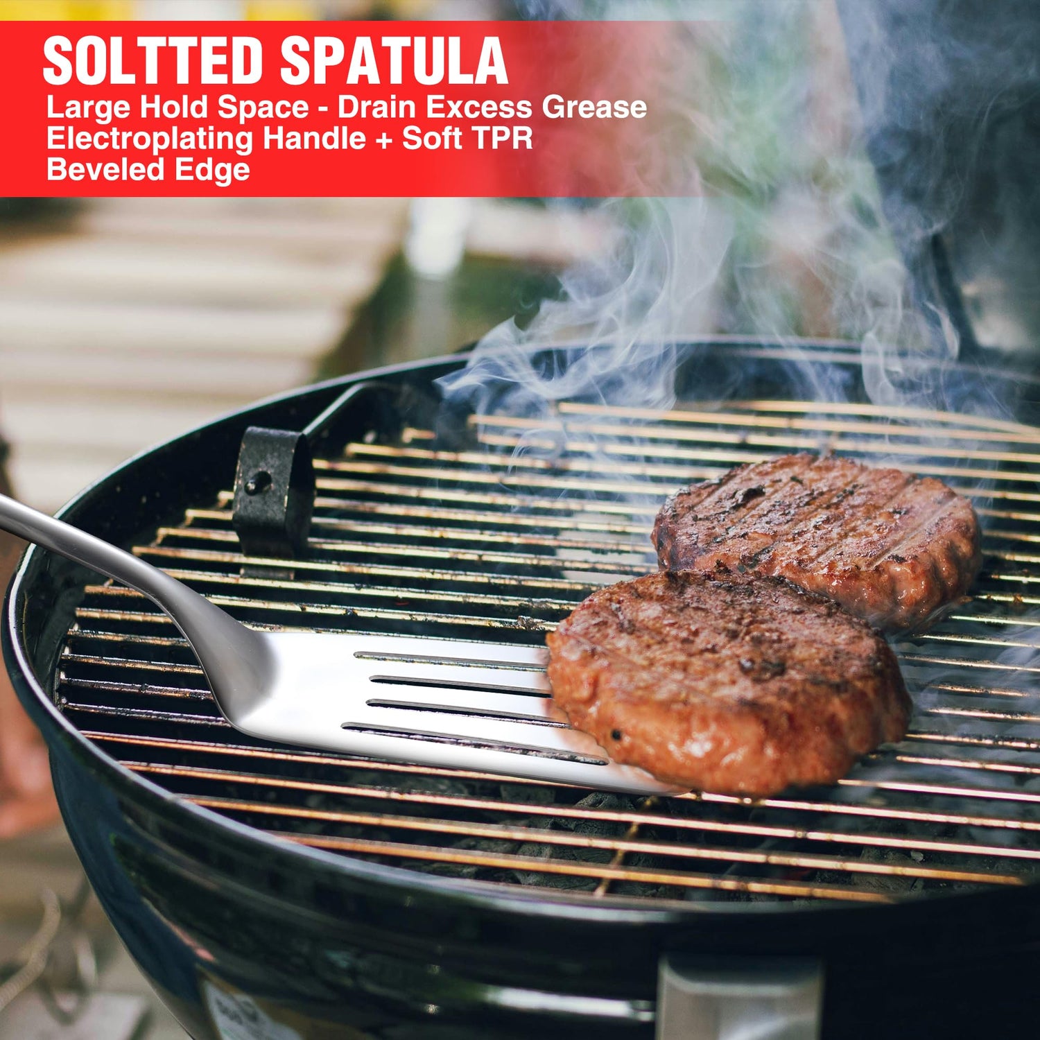 - Practical BBQ Set : The most commonly used grill accessories include a Spatula, Fork, Brush & Tongs with comfortable heat-against grips. These BBQ accessories satisfy all kinds of occasions.