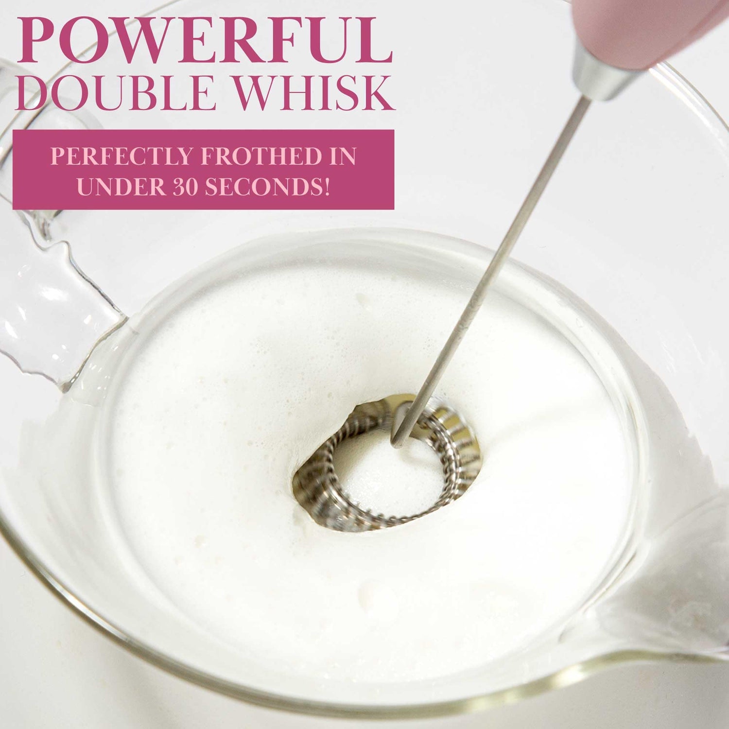 - EPIC MORNING DRINKS: The double coil frother head effortlessly whisks and froths milk to create the perfect hot/cold foam for your favorite coffee drinks like latte, cappuccino, frappe.
