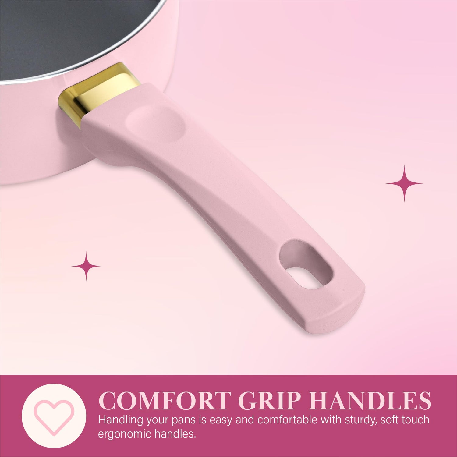 - COOK IN STYLE: The soft touch, stay cool handles provide comfort and control while your culinary creation sizzles. The multi-layer non stick coating allows for easy food release and clean up. Save your manicure, no scrubbing needed as this is a dishwasher safe pots and pans set, clean up is simple.