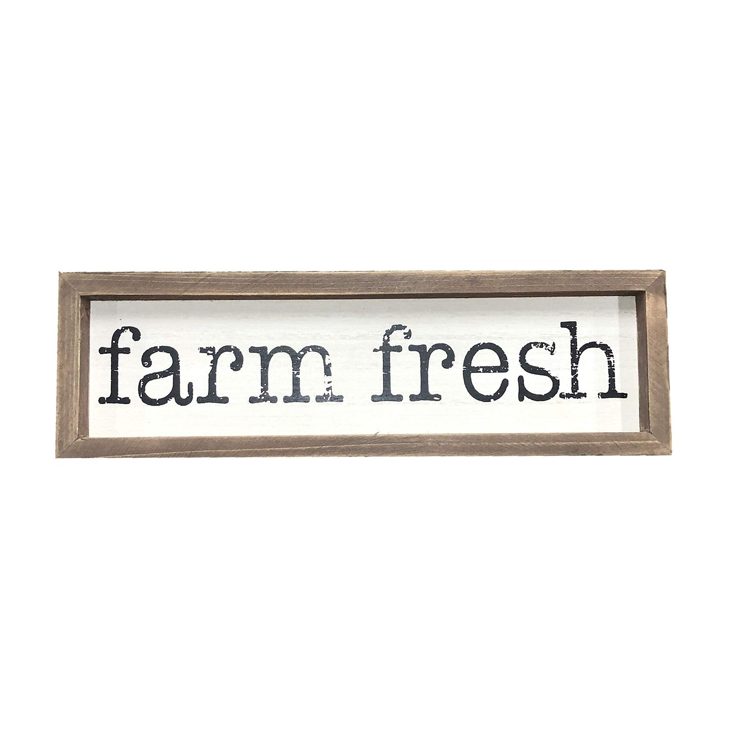 PARISLOFT Farm Fresh Solid Pine Wood Framed Signs for Home Decor, Rustic Farmhouse Decorations