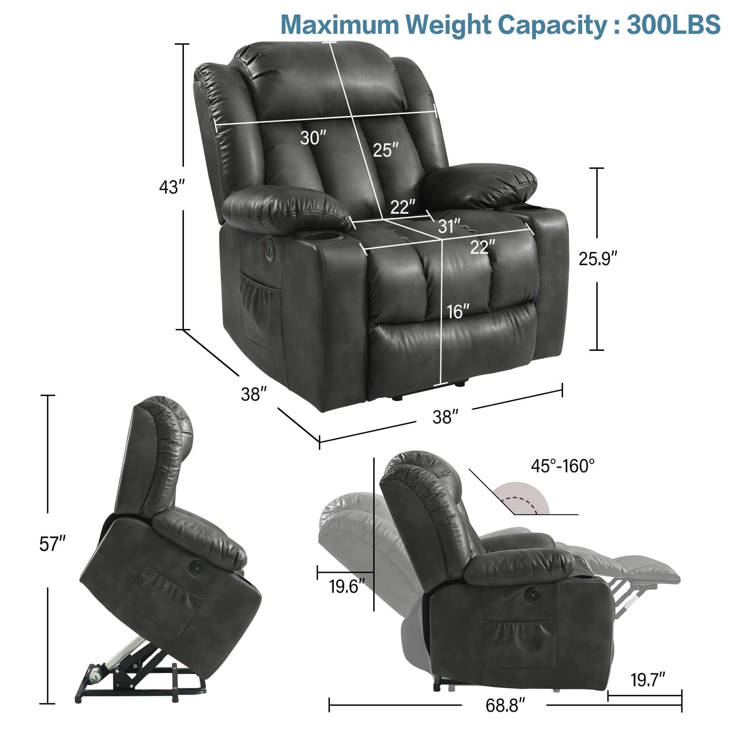 - [Additional Features] - This chair has many wonderful functions. Charge your electronic devices anytime with the 2 USB charge ports while keeping small items close at hand with the pockets on both sides of the armrest. The 2 cup holders cater to your daily beverage needs. The extension footrest allows you to stretch and fully relax while indulging in activities like reading, sleeping, or watching TV. Control all functions of the chair with the convenience of the included remote control.