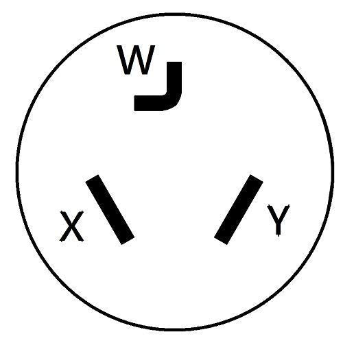 - NEMA 10-30 Plug, Dryer 3-prong male, 250V, right-angle type.