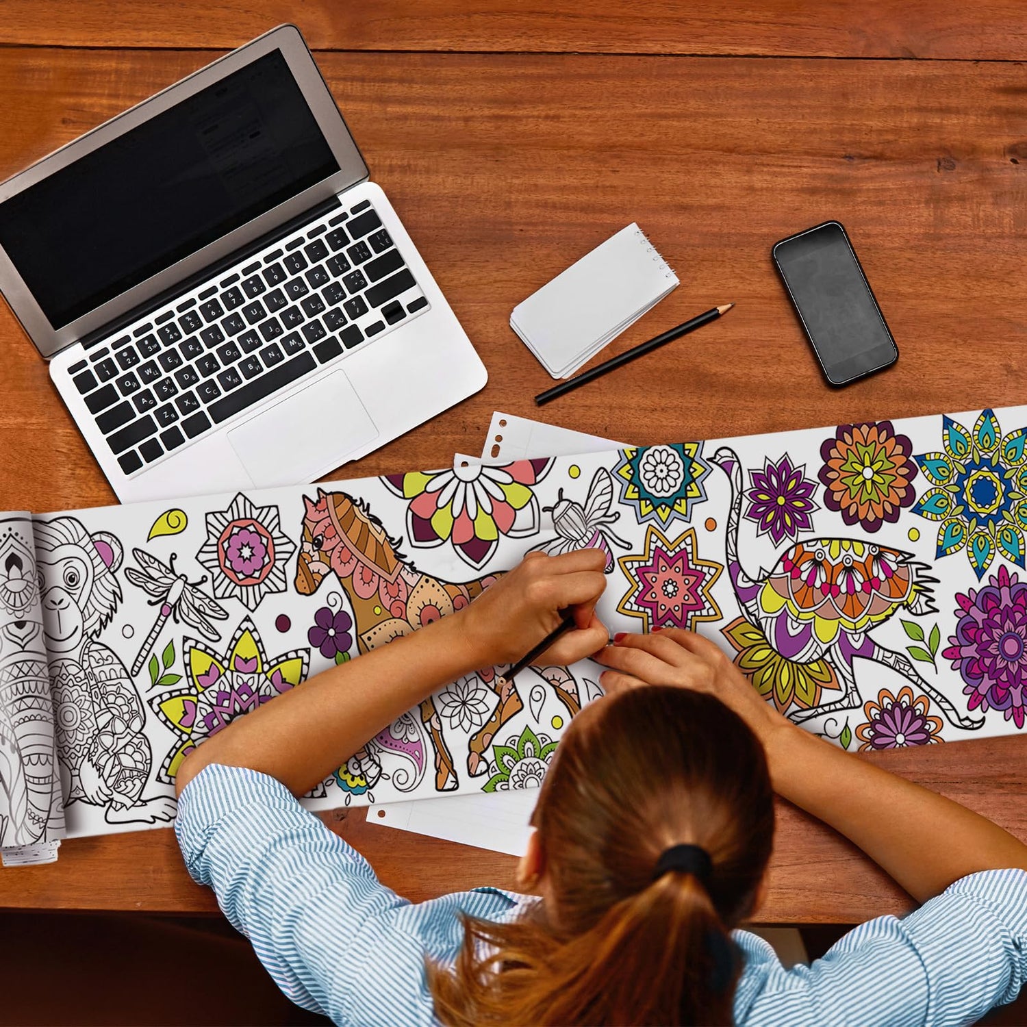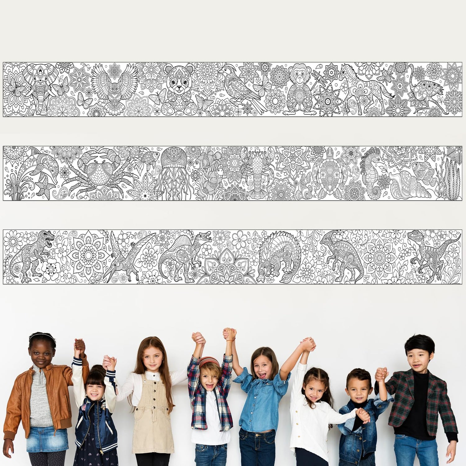 Pasimy 3 Pieces Giant Coloring Posters 11.8 x 118 Inch Mandala Animals Jumbo DIY Drawing Paper Large Coloring Sheets Pages Huge Mandala Drawing Banner for Adult Kids Home Classroom Craft Art Activity