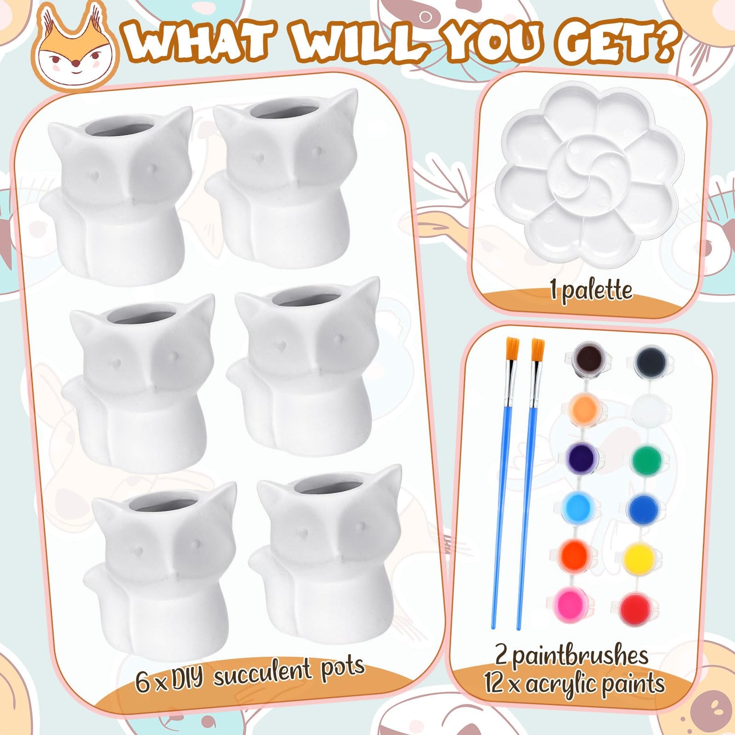 - Sufficient Quantity: you will receive 6 sets of DIY ceramic paint your own fox craft kit, includes 6 pieces of unpainted fox flowerpots, 12 colors of mini acrylic paints, 2 pieces of paint brushes and 1 piece of palette, enough in quantity everything you need to unleash your inner artist