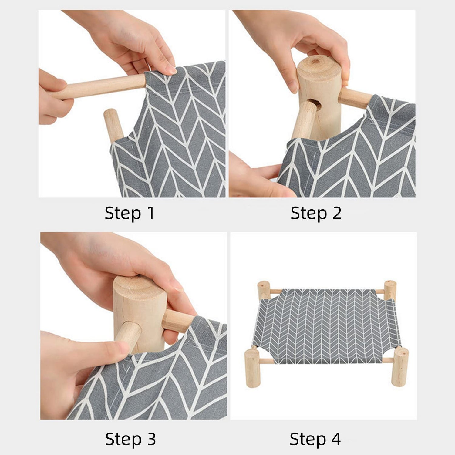 - 😸EASY TO ASSEMBLE & CLEAN: The cat cot is easy to assemble with logs. It takes you less than 3 minutes to finish the installation and get a perfect cat bed. The cover material is removable and washable, easy to get rid of odor and shredded fur.