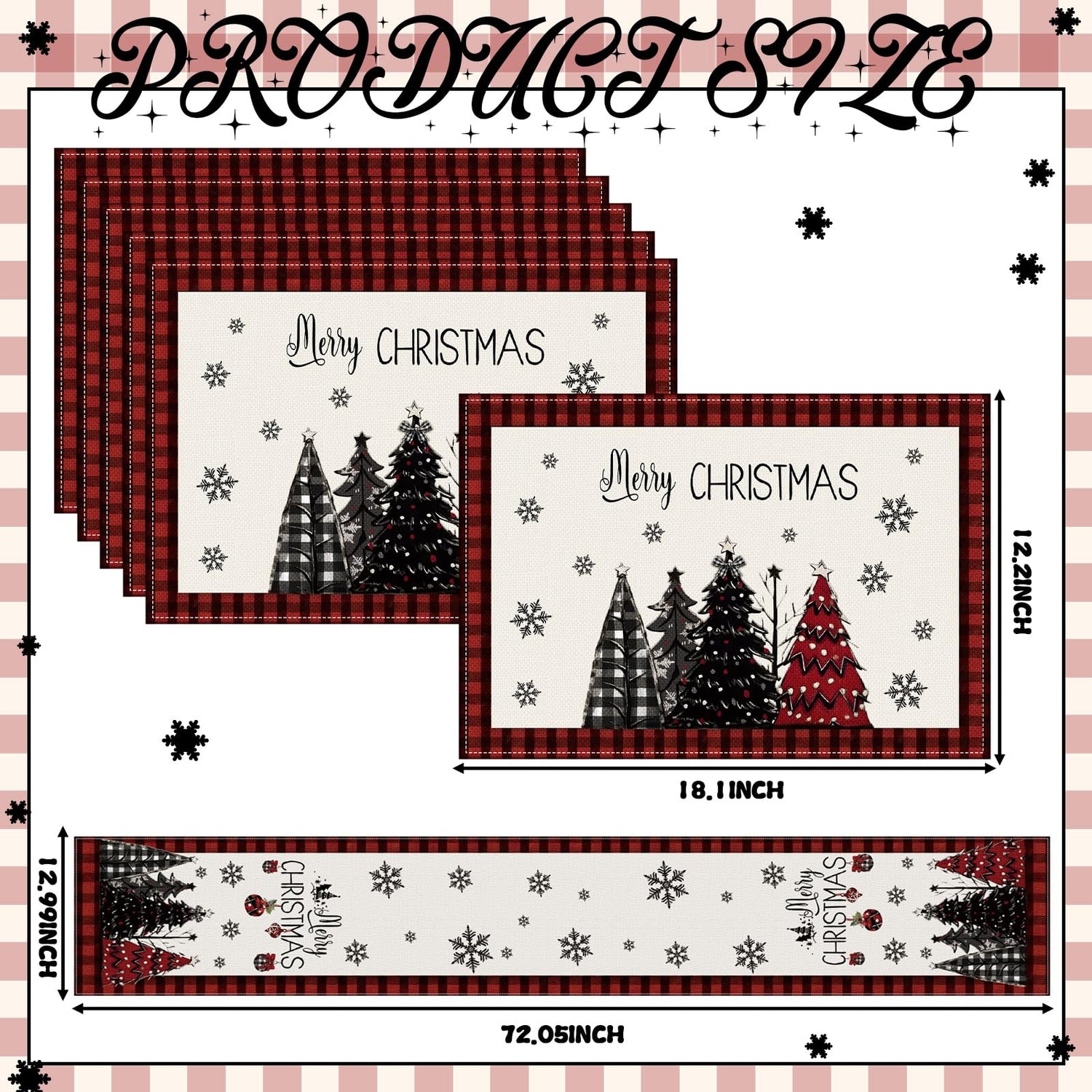 - Christmas Table Runner and Placemat Set: this set includes 1 Christmas table runner and 6 placemats, which is a convenient choice for your holiday decoration; It is not only economical, but also saves you the time of buying each accessory separately, and can easily meet the dining needs of 6 people