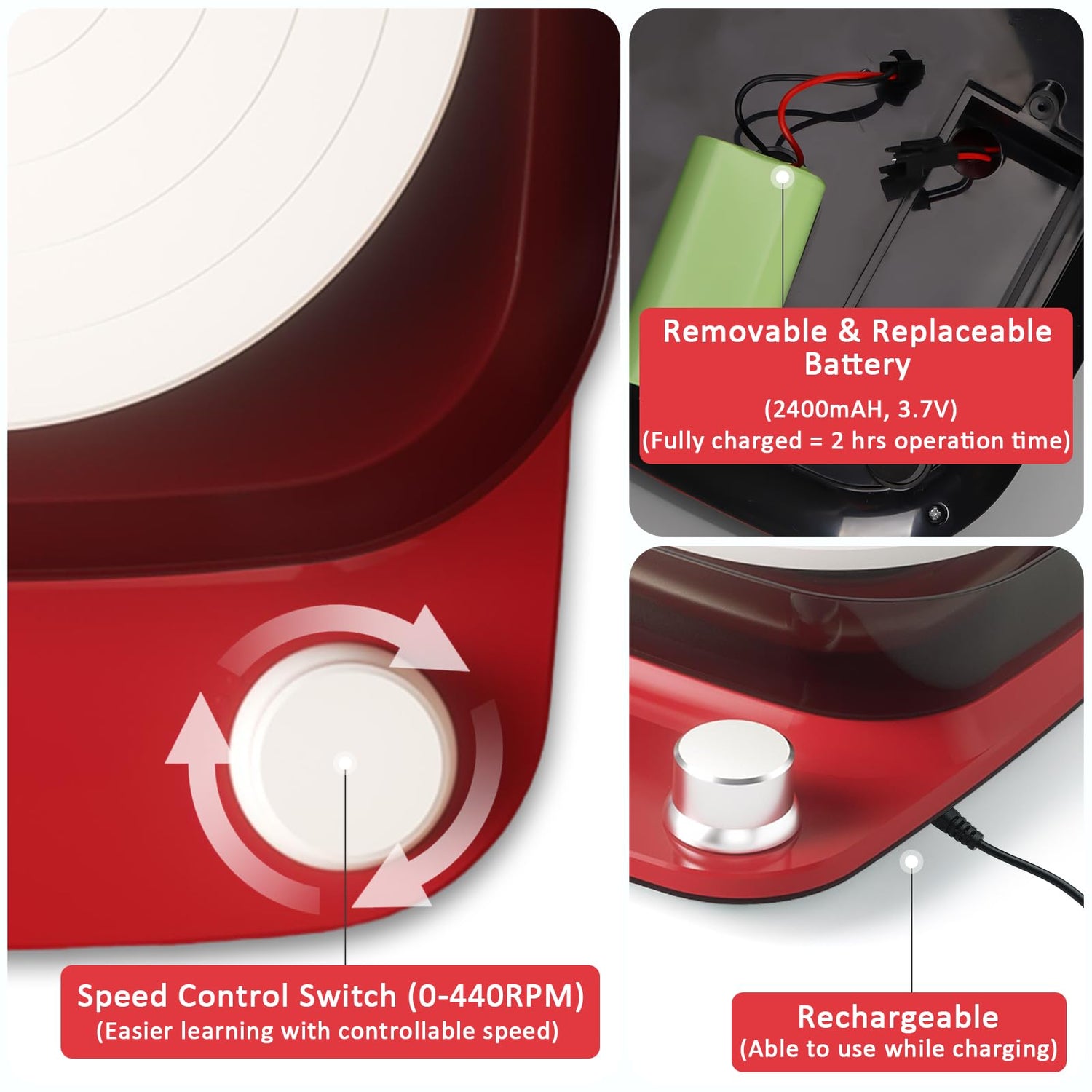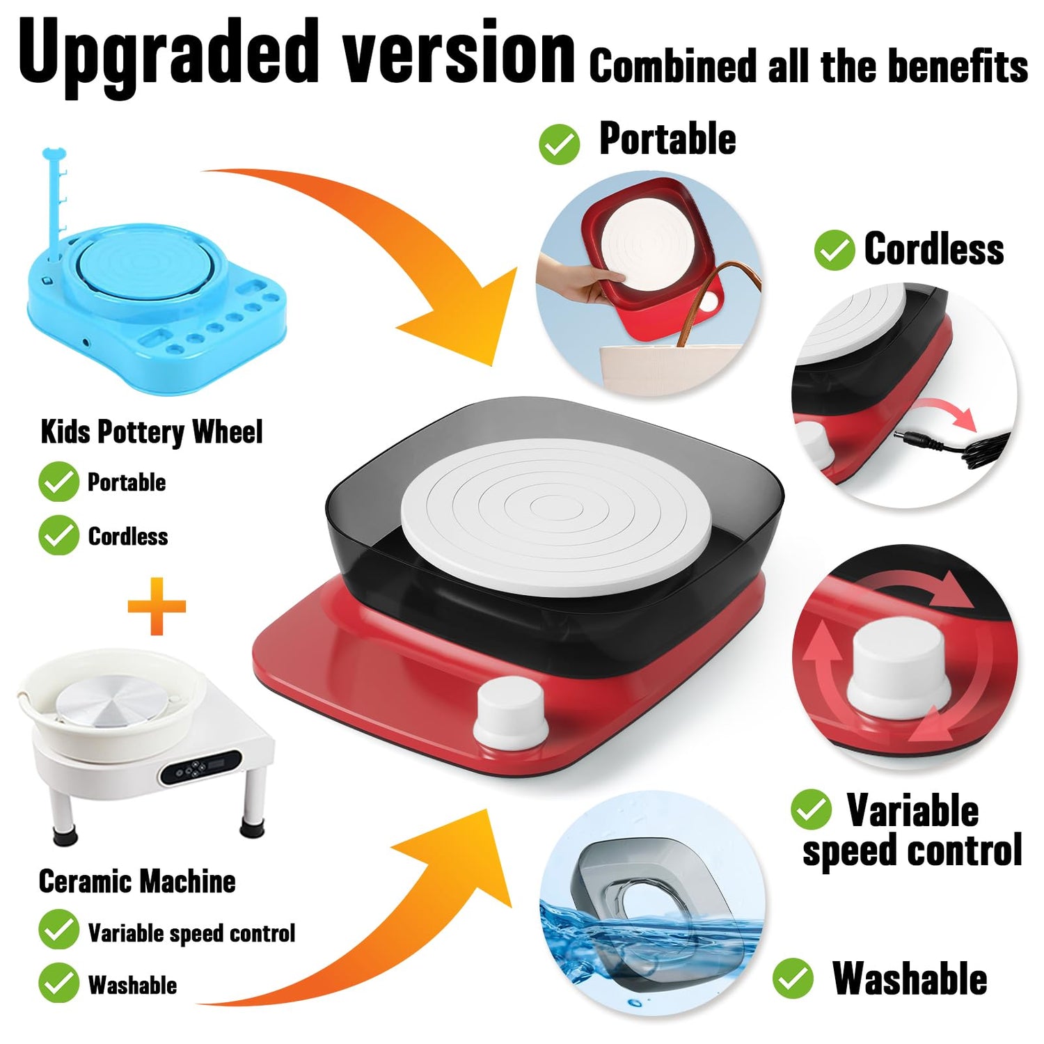 - PORTABLE: Shape your pottery wherever inspiration strikes. Our pottery wheel is extremely lightweight and operates on reliable battery power, making it highly portable. Whether you're at school, a friend's house, or your own art studio, the portability makes crafting convenient and broadens your artistic possibilities.