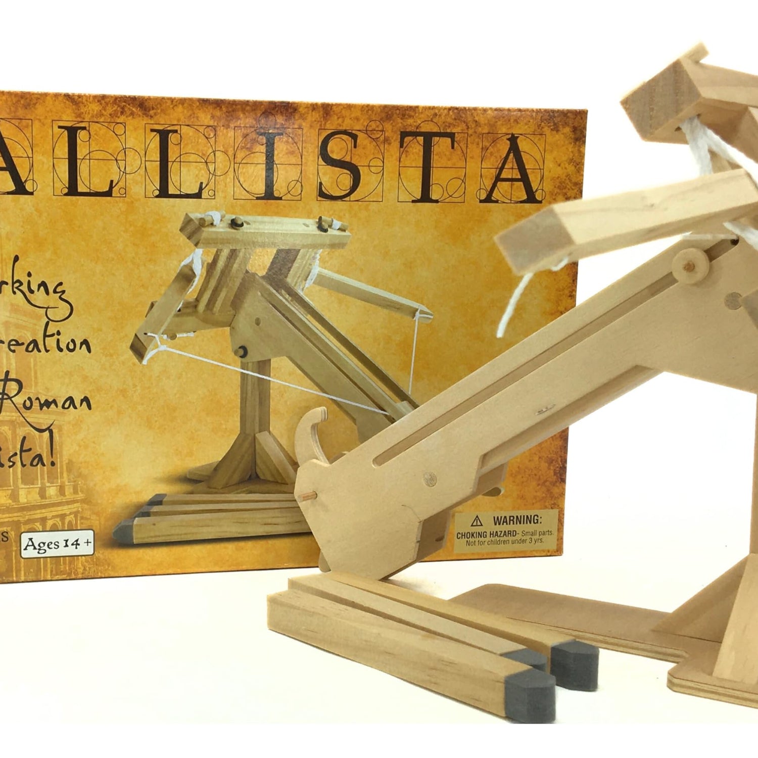 - WHATS INCLUDED? The Roman Ballista catapult kit comes with all parts precut and ready to assemble to build a working model Ballista. Model kit includes 3 wooden madalion projectiles.