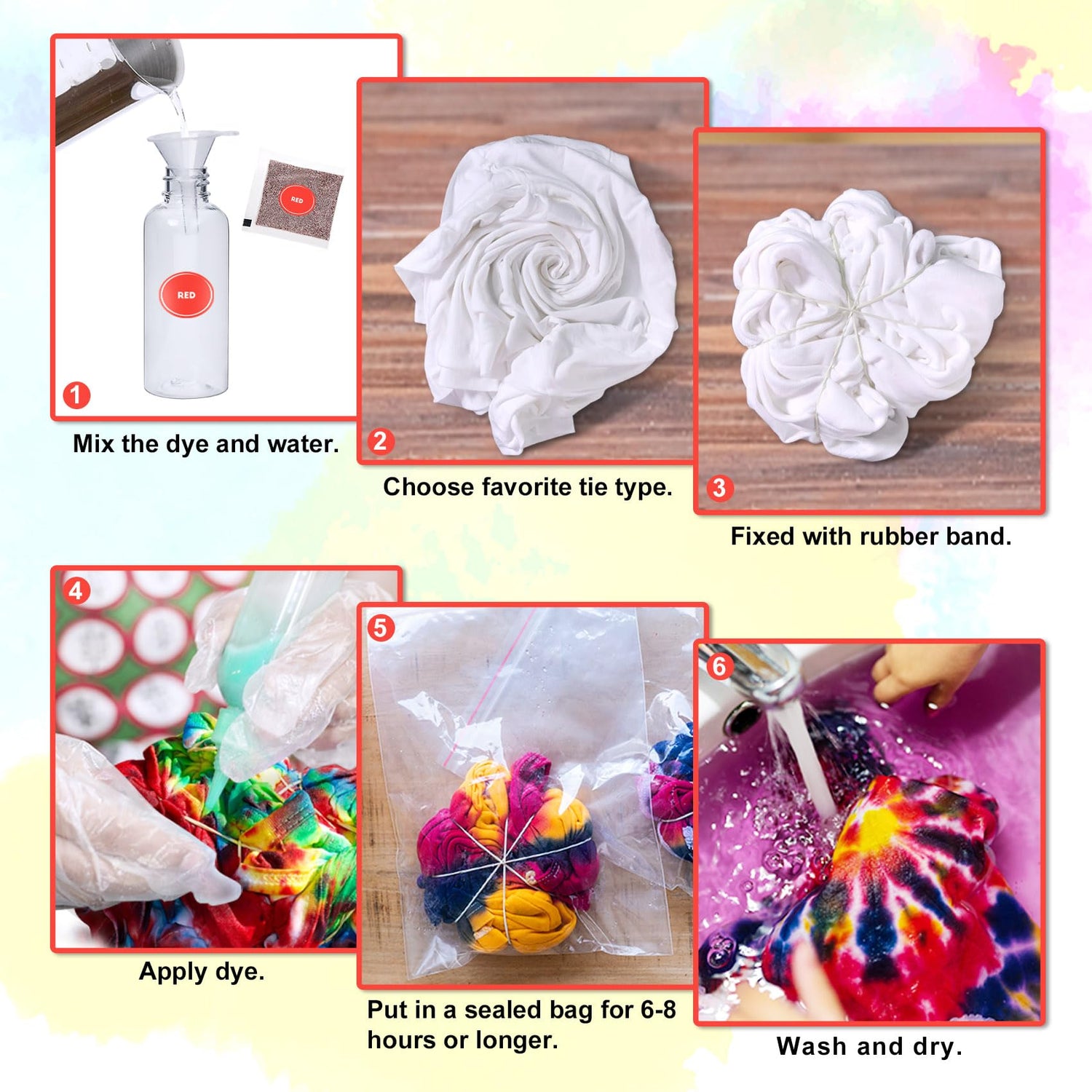 - Easy to Tie Dye --- Pack the tie die powder in a squeeze bottle, just add water to the bottle and shake evenly, no need to presoak fabrics in soda ash before dying. You can even mix different colours to create unique shades.
