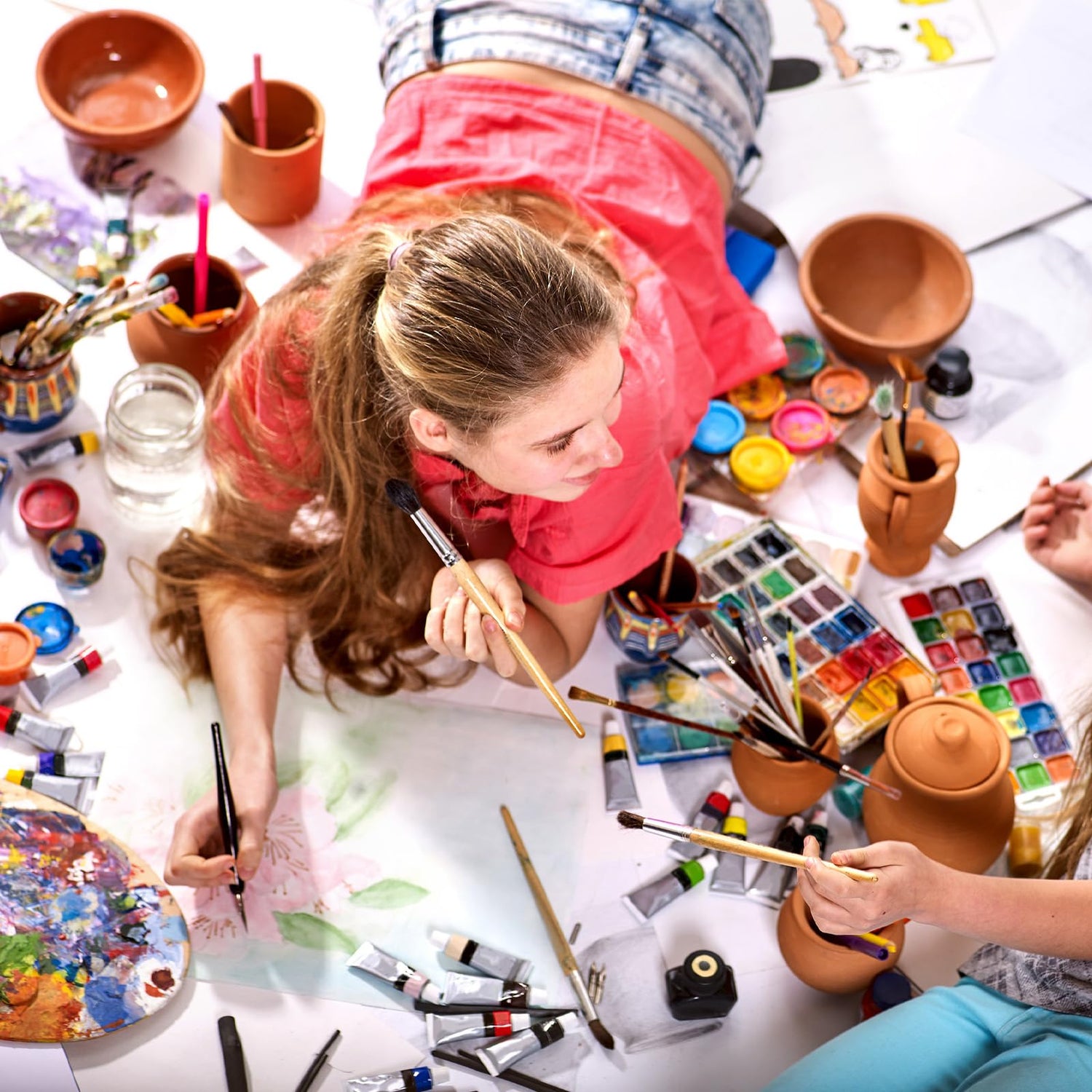 - Instruction: Put different colors of paint into different wells of the palette, and wash them out when not in use.