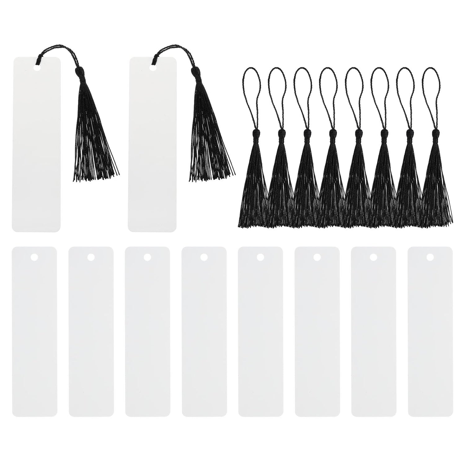 PATIKIL 4.72" x 1.3" Blank Metal Bookmark, 10 Pack Heat Transfer Rectangle Book Marks Page Markers Tassel for Women Book Lover DIY Project Gift, Black