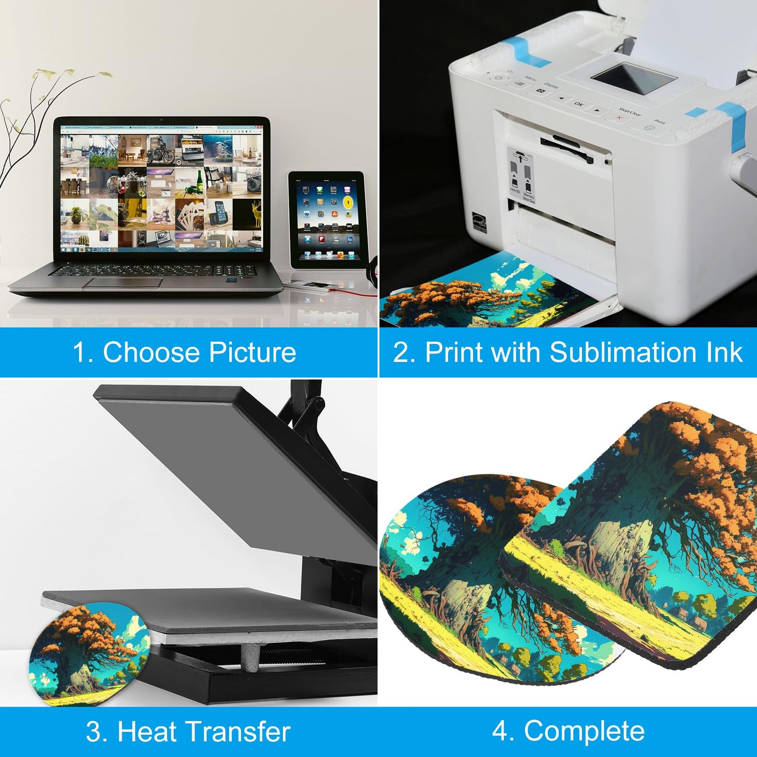 - Instruction : Any personalized pictures can be printed on the white polyester fabric, and you can choose your favorite photos or patterns to print on the blank coasters. Pressing temperature: 180-400℃ (356-752°F) Pressing time: 45-80 seconds. Bright colors and clear patterns will be fully transferred and never fade. Washable and reusable, high temperature resistant and not easy to deform. Suitable for DIY heat pressing, ink sublimation, paint, etc.