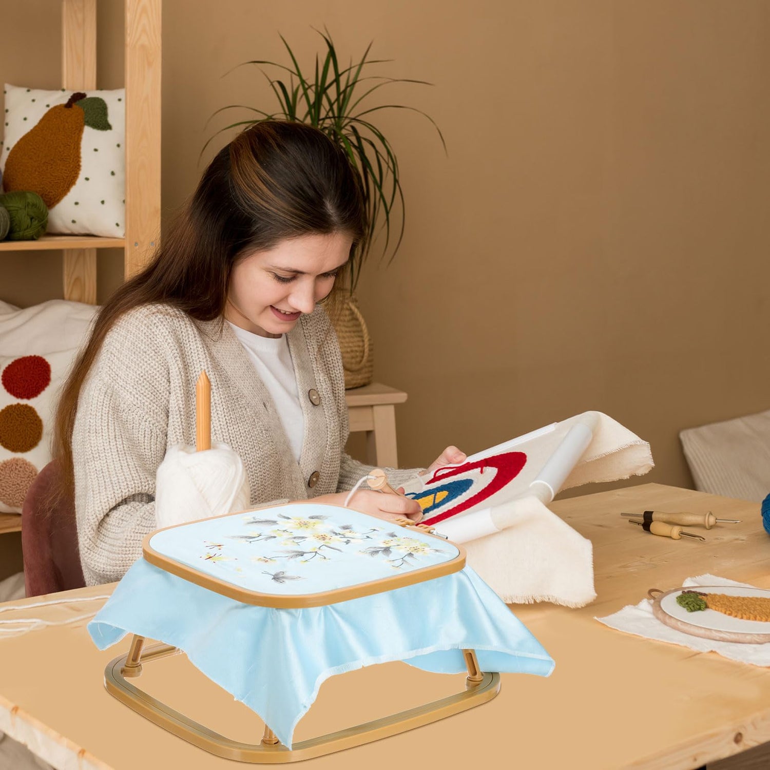 - Ergonomic Design: With an ergonomic focus, the 2-tier embroidery hoop stand positions the hoop at a comfortable height and angle for the user, reducing strain on the body, and enhancing embroiderers' productivity and enjoyment. The stand features a space-saving design, which is very convenient to store away.