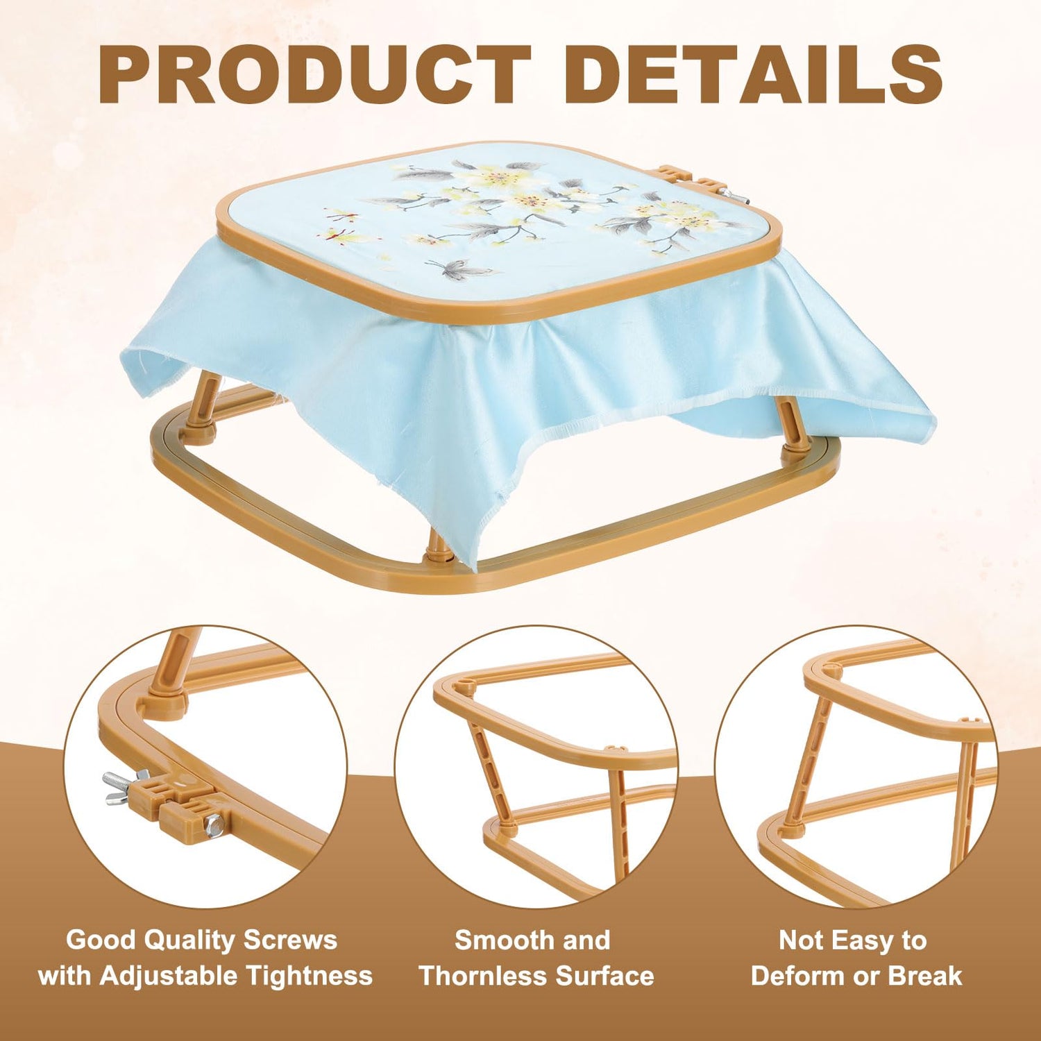 PATIKIL 9.4" x 8.7" Square Embroidery Hoop Stand, Adjustable ABS Plastic Cross Stitch Stand Hands-Free 2-Tier Embroidery Hoop Holder Punch Needle Frame for Sewing Arts Needlework, Khaki