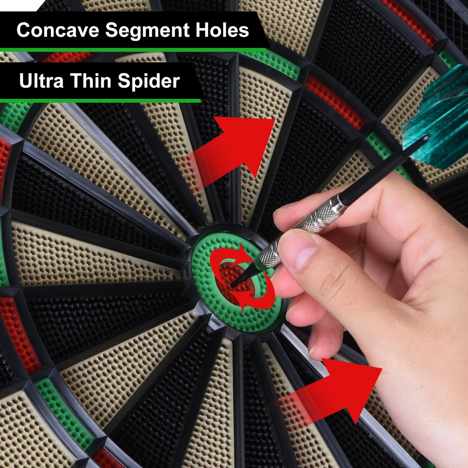 - Lower Bounce Rate: The concave segment holes and ultra-thin wire design minimize bounce-outs, ensuring more accurate scoring. A large catch ring surrounds the target area, providing a 360-degree landing zone for any shots and protecting your walls from damage.