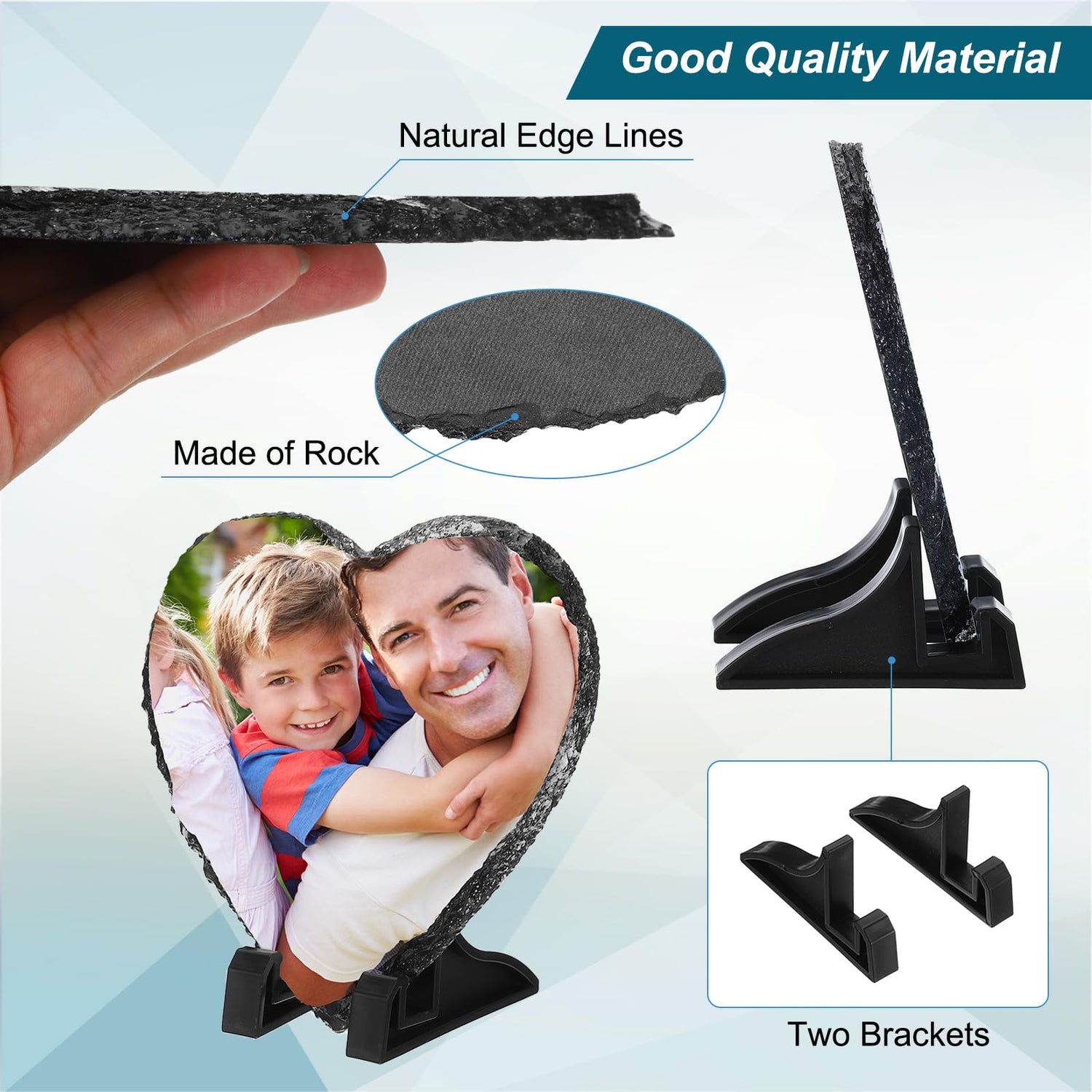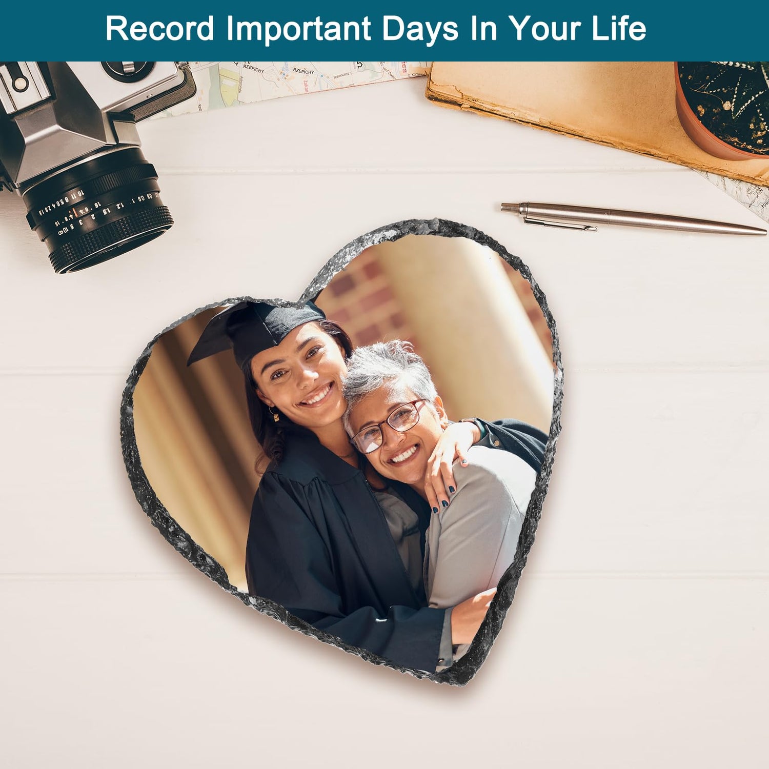 - DIY Sublimation Photo: These slates are great for making a photo to memoried your friends, dogs, or special days, They have a heart shape that is perfect for images with a balanced composition. The images are printed directly onto the slate surface, using a dye-sublimation printing process that produces vibrant and long-lasting colours. The natural texture and color of the slate make each slate unique and add a touch of sophistication to any space.