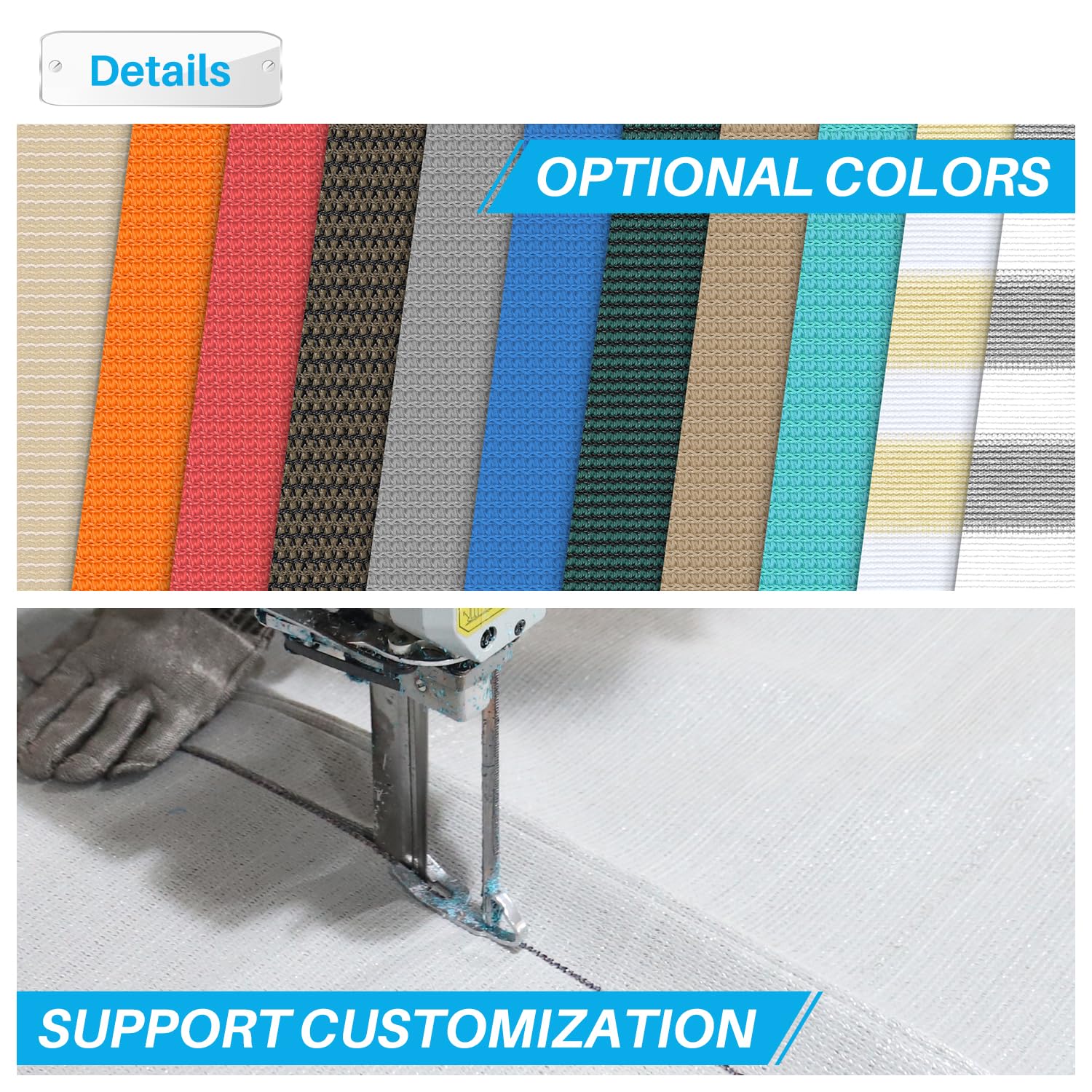 Details: Patio Outdoor Shade Panel Patio Outdoor Shade Panel. It could bring your outdoor spaces a totally different experience during the warm months of the year. Rather than hiding away during the best parts of the day, with our outdoor shade panel you can spend time out of doors enjoying the fine weather. Our unique designed fabric provides up to 95% UV protecting while allowing cooling air circulation. Heat and glare are significantly reduced. 2 sides grommets placement makes installation much easier. Grommets placed every 2’ apart for tie downs. 2 sides with weighted rods help to hold down shade panel in high winds. Patio Outdoor Shade panel are Ideal for Pergola,Trellis, Gazebo, Patio, Deck, YardCan be used to pergola, gazebo.Ideal for your patio, deck, porch or any other outdoor area.Multiple colors and sizes for endless installation ideas to make your patio or deck unique and shady Want customized size? Call Patio now!Contact us now to place order for a customized size as you like! The customized order will take 3-5 day longer to ship out, please note that our custom shade panels are made case-by-case and can not be resold so please pick your size carefully.