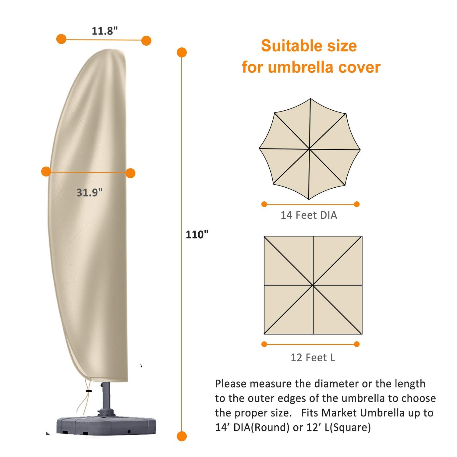 Patio Cantilever Umbrella Covers for Outdoor: Waterproof Offset Umbrella Cover Banana Style with Zipper fits 9FT to 14FT, Khaki