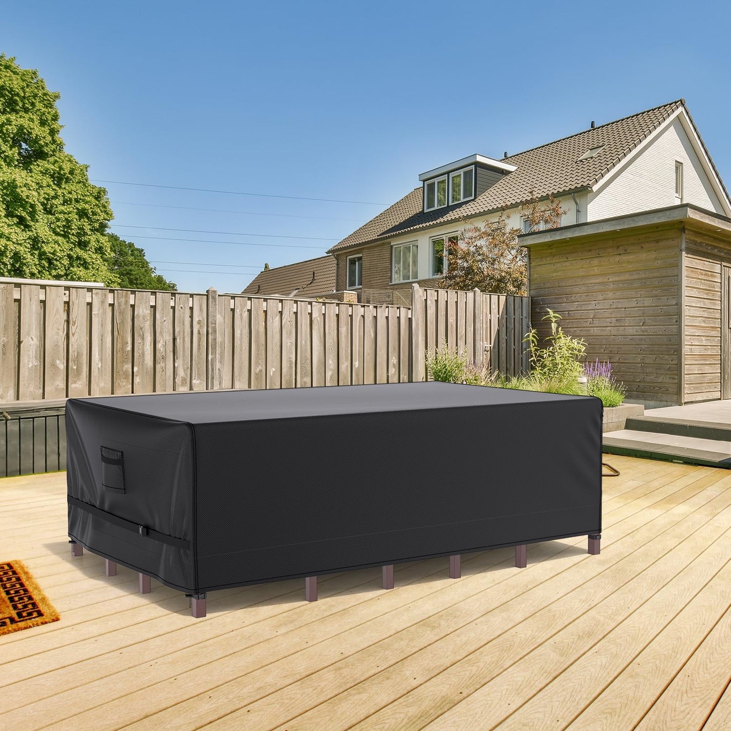 Patio Furniture Covers, Gorpche Outdoor Furniture Covers Waterproof, Tear-Resistant Patio Table and Chair Set Cover with Upgraded Fastener Windproof Buckle Straps, Heavy Duty, 108"L× 82"W× 28"H, Black