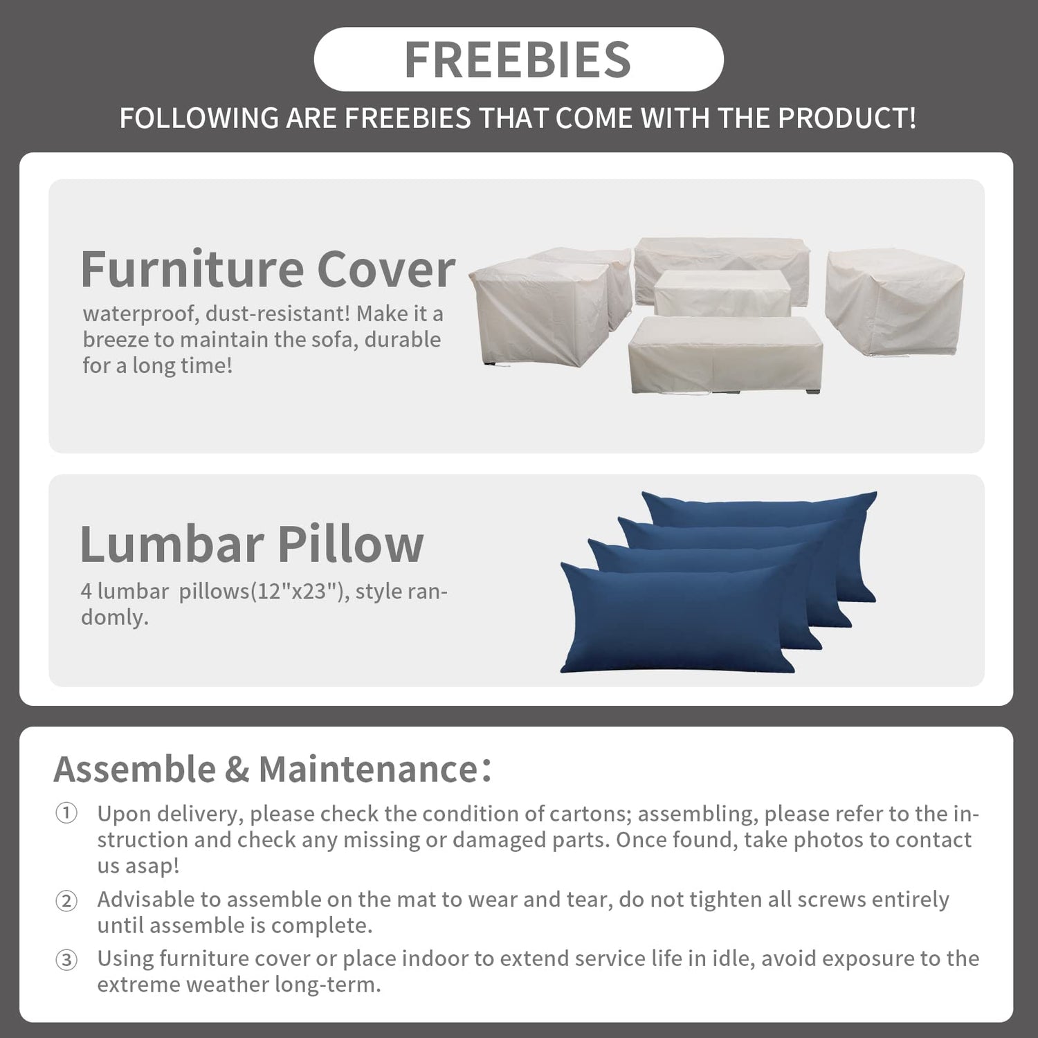 • Assembly & After-sales: The outdoor patio set includes 6 boxes, with clear instructions and all necessary hardware for speedy, smooth assembly, also Assembly Demo Video is available. Any problems, let us know without hesitation, and our team will respond to you promptly and the powerful solutions, including replacement or return & refund.