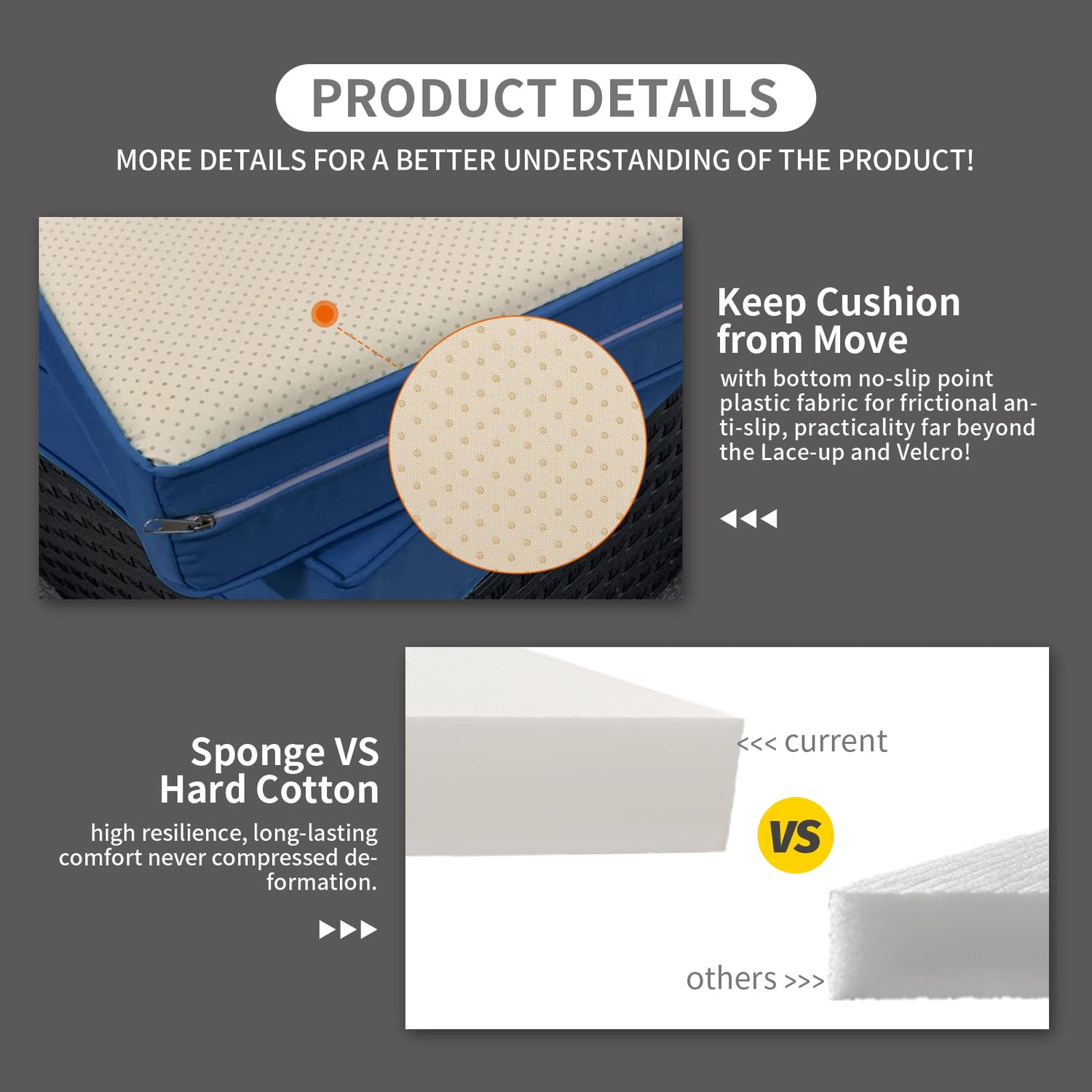 • Comfortable & Non-slip: Thickened seat cushions(4") with high resilience sponge and bottom anti-slip dotted plastic fabric, anti-slip and practicality are wholly better than lacing, velcro or hook, match up filling back cushions, which is extraordinarily comfortable and everlasting with front porch furniture. Free lumbar pillows style randomly.