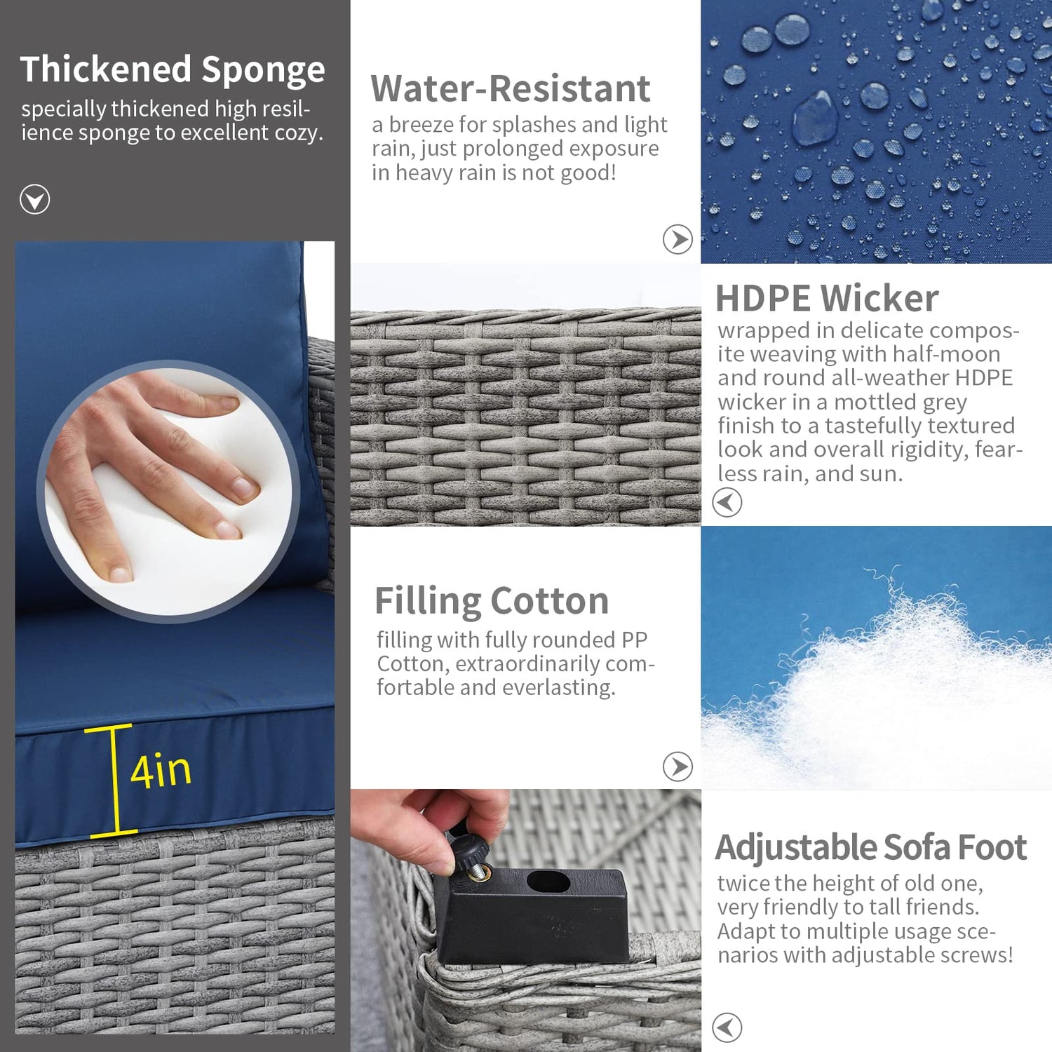 Material: steel frame, high-density polyethylene(HDPE) wicker, high resilience sponge, 250g polyester fabric