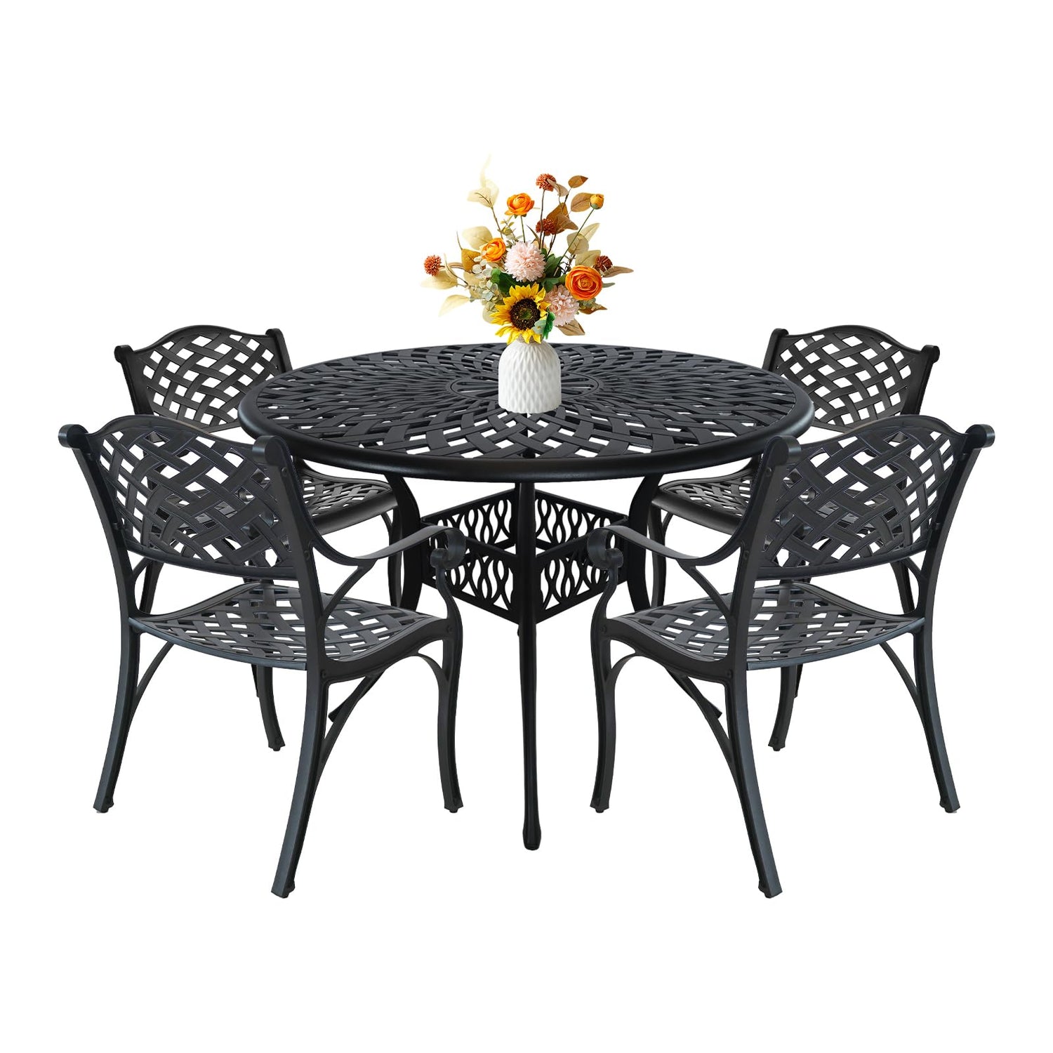 PATIO-IN 5 Piece Cast Aluminum Outdoor Dining Set, Outdoor Table and Chairs Set of 4, Patio Dining Set with 4 Chairs and 42" Round Table, Patio Conversation Set with 1.97" Umbrella Hole