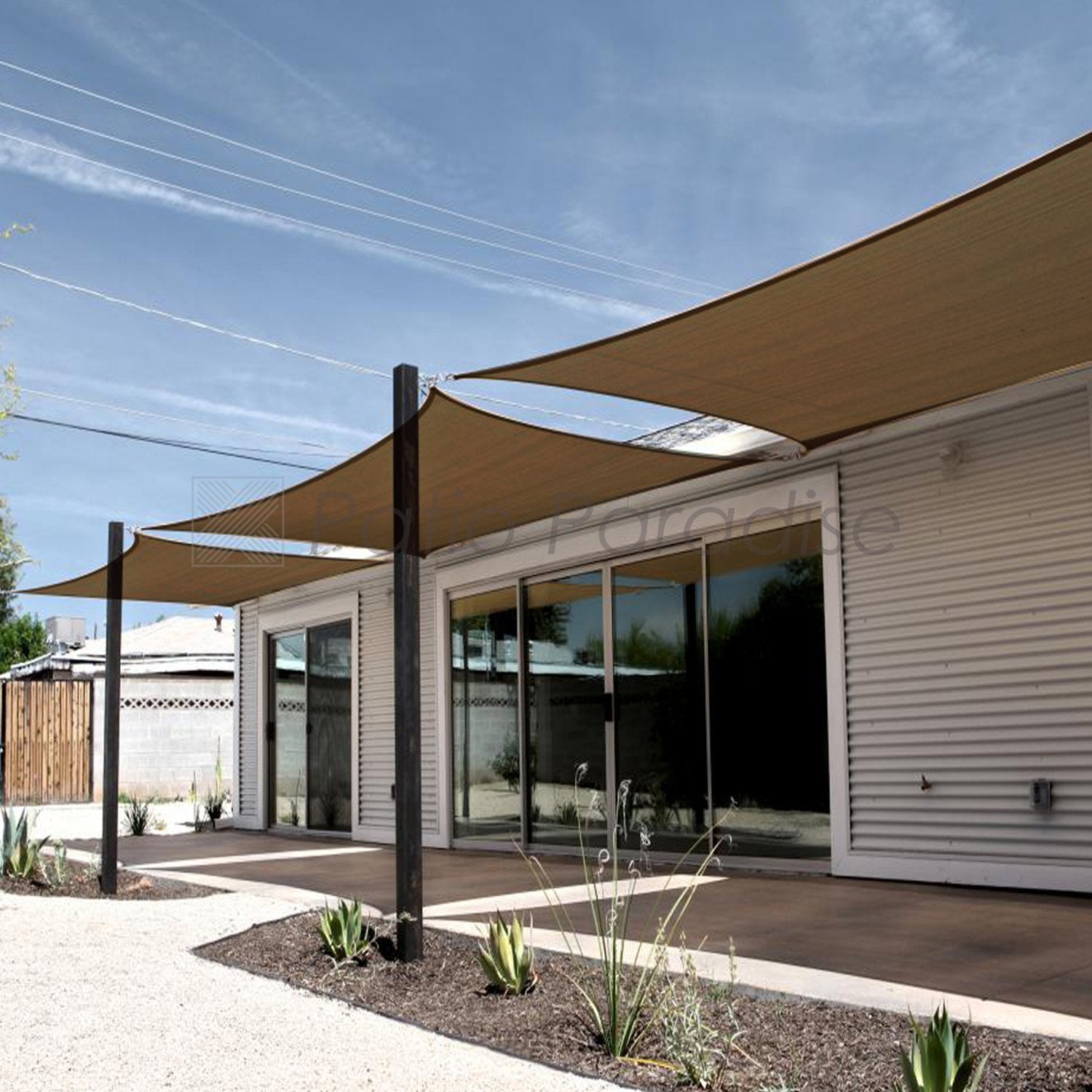 - ★【INSTALLATION GUIDE】: Installation hardware kits are required and sold separately, each D-ring will require one cable rope (DO NOT use nylon ropes, they break easily!!). Connect the other ends of cables to existing poles, trees, or walls with shade sail hardware kits, high-quality Patio Paradise hardware kits and cables are strongly recommended for best performance and appearance.