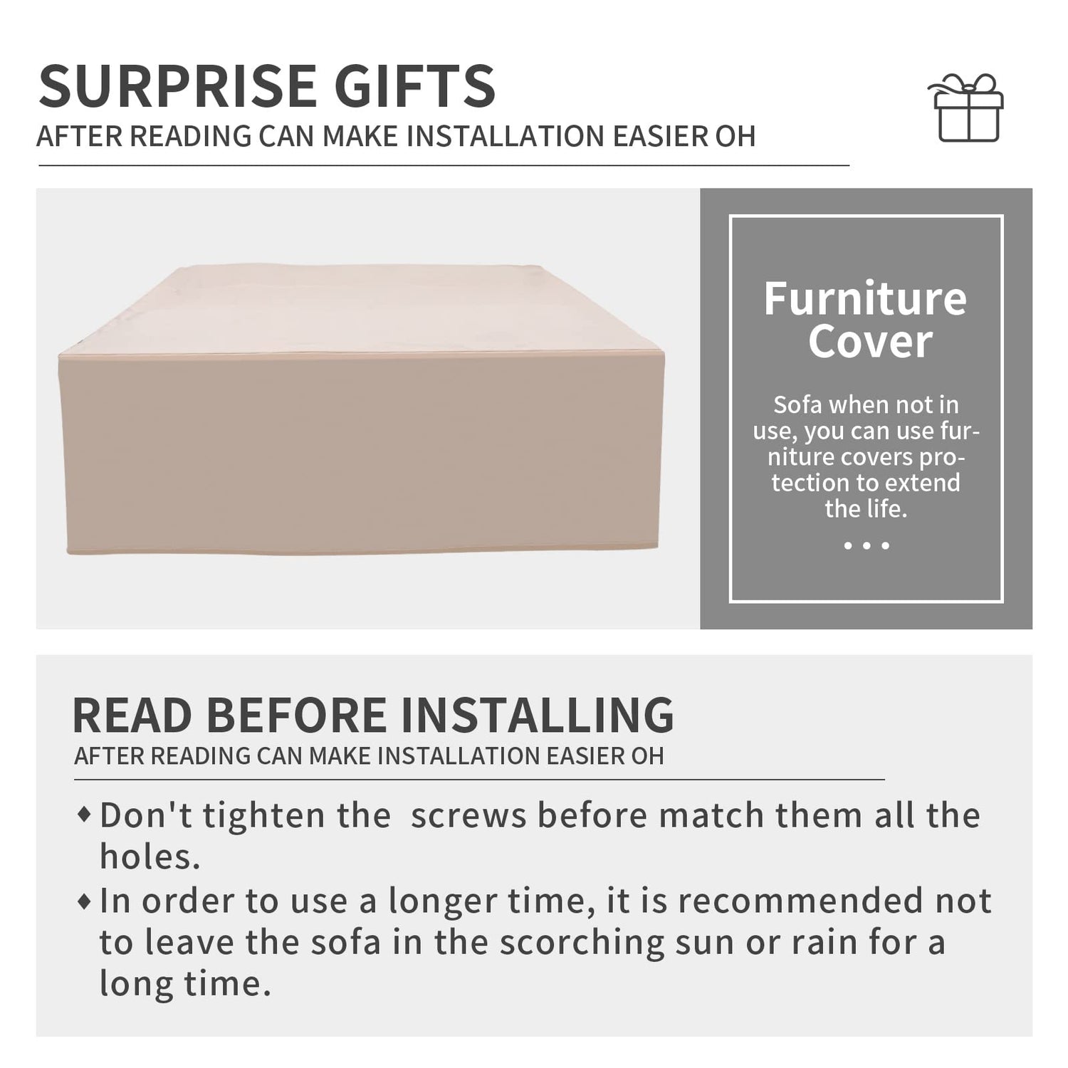 - ASSEMBLY: This patio set includes 2 boxes, clear instruction and all necessary hardware are included. Components with labels are facilitated to assemble, and they correspond to the labels on the instructions.