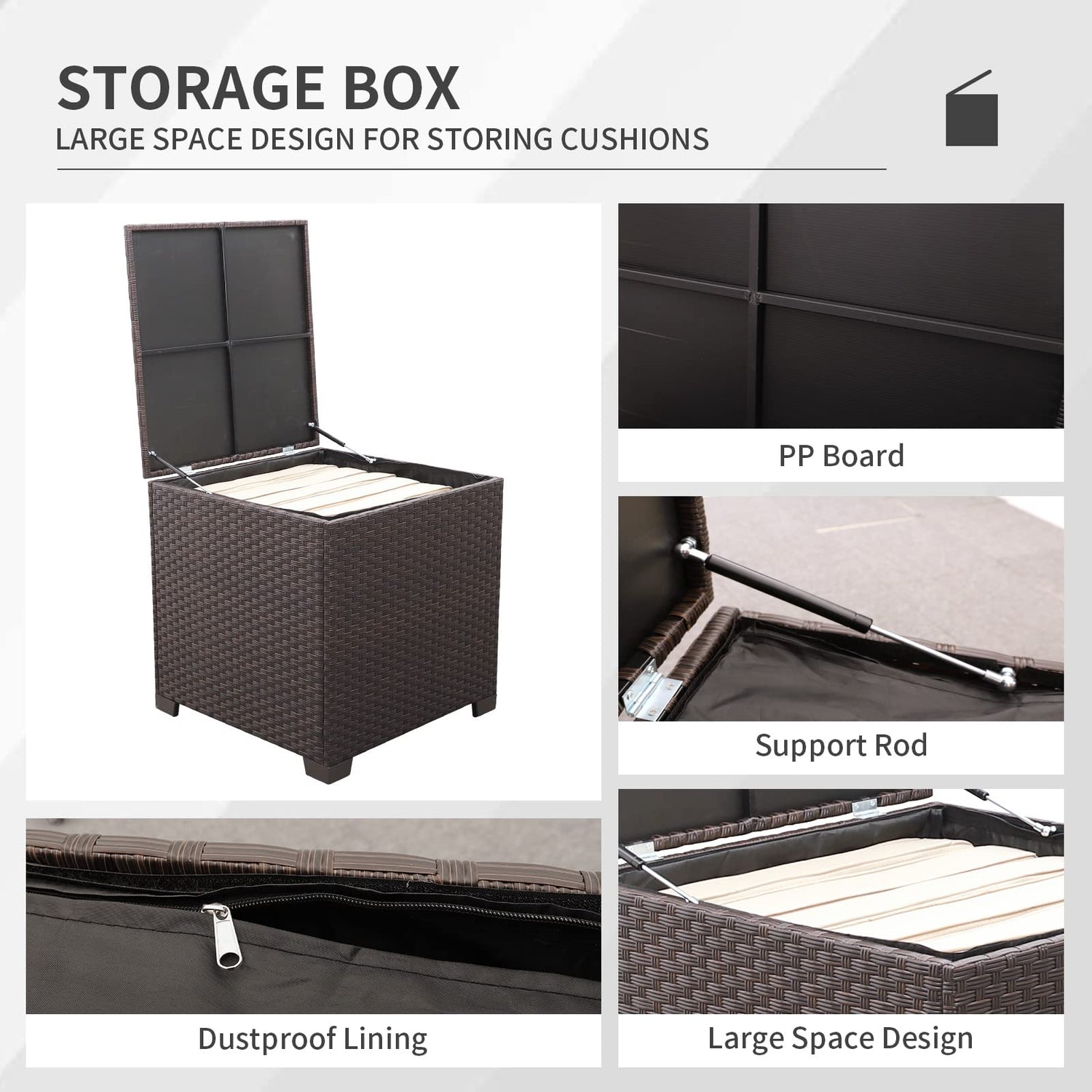 Patio PE Wicker Furniture Set 4 Pieces Outdoor Brown Rattan Sectional Conversation Sofa Chair with Storage Box Table and Khaki Cushions