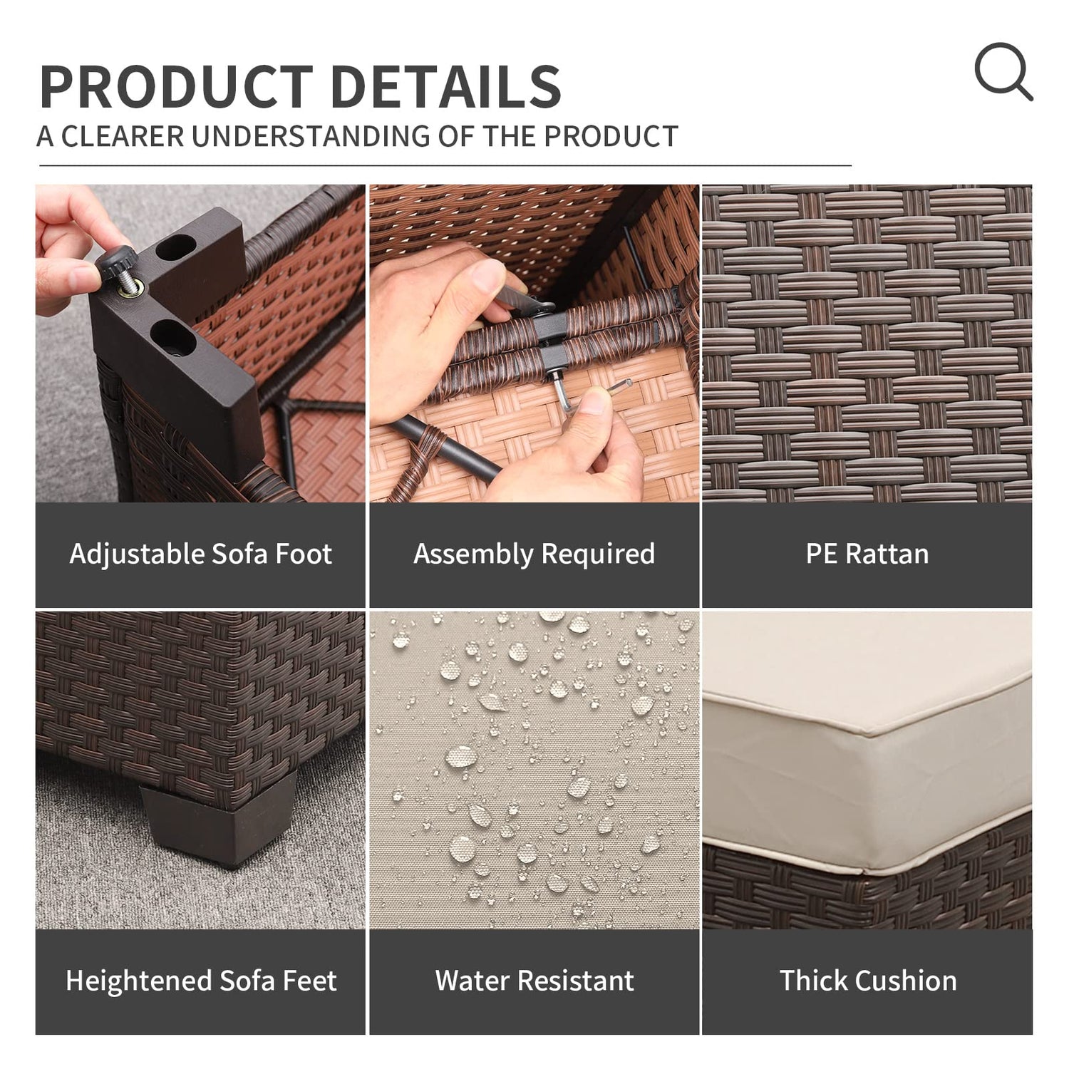- QUALITY and STURDY: Made with all-weather PE wicker and steel frame to make this patio set modern and durable. No worry to rust, split, crack, fade, and ensure it used for a long time.