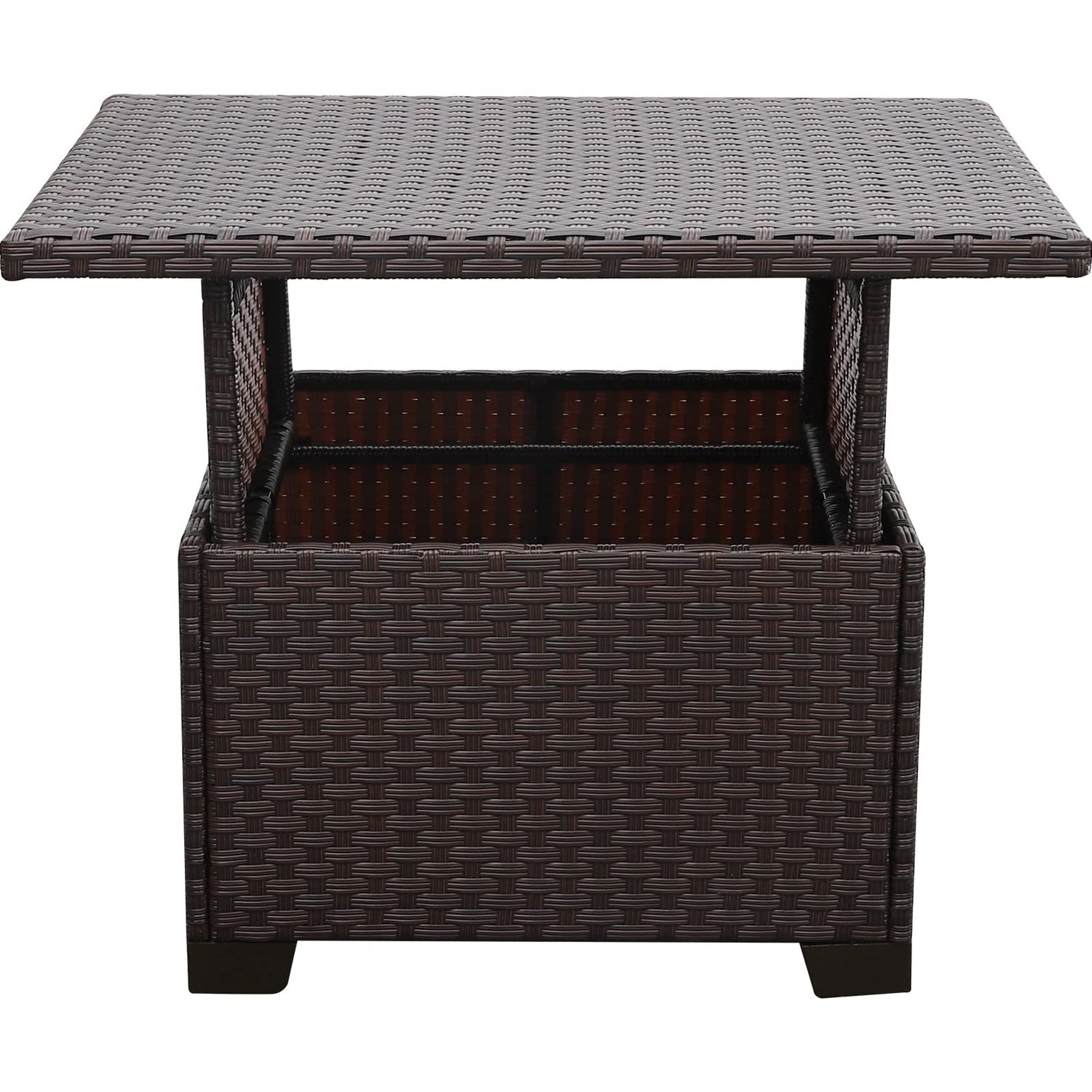Patio Rattan Coffee Table with Hidden Storage, Wicker Liftable Dinning Table, Versatile Piece of Outdoor Furniture, Brown