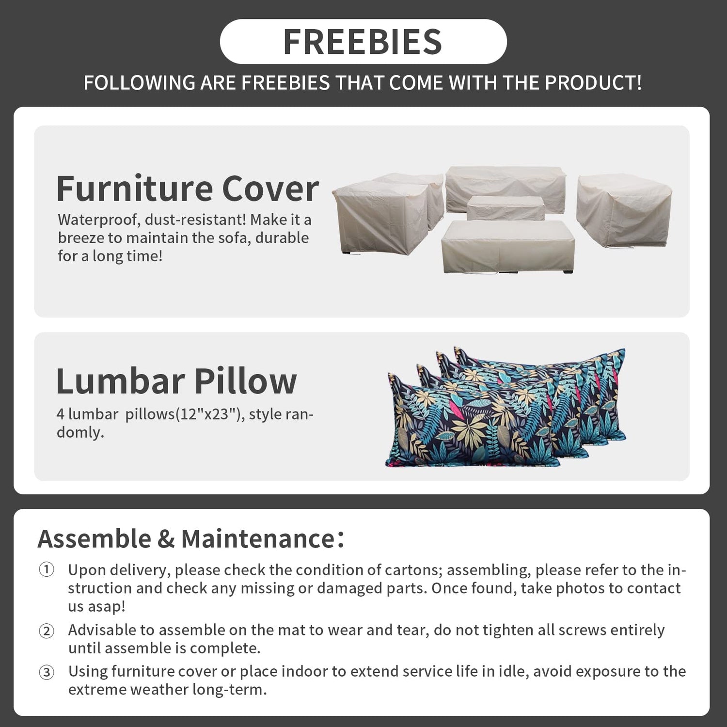 - Packaging & Assembly: The outdoor couch furniture set includes 4 boxes. Clear instructions and all necessary hardware for smooth assembly, also Assembly Demo Video available.