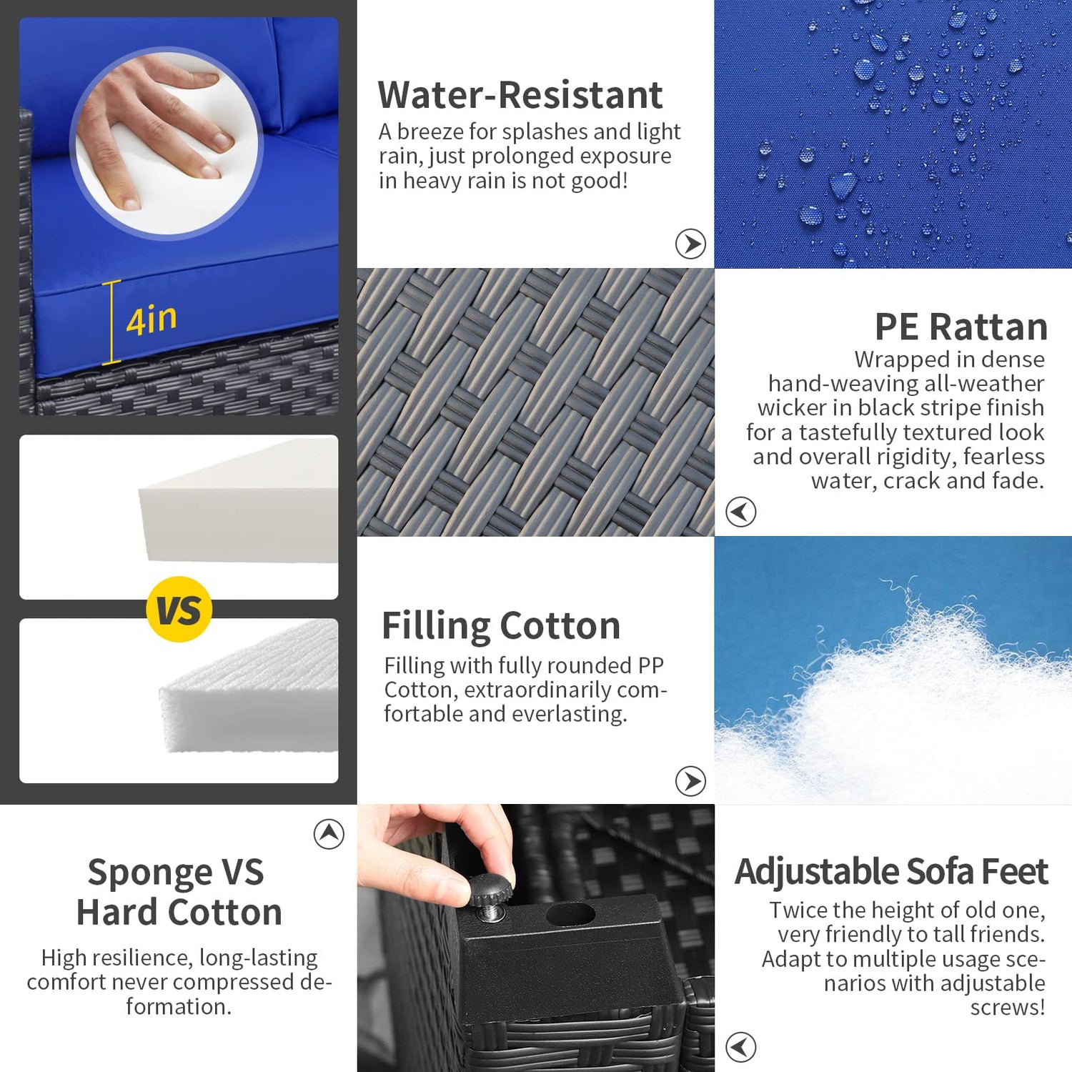 - Quality & Maintain: All-Weather wicker and Anti-Rust steel frame make this wicker patio furniture set very durable and sturdy. Breathable 250G polyester Anti-UV and water repellent fabric, against stain, with a zipper for easy cleaning and replacement; with the Furniture Covers, no worry about dust, water, fade, and rust, superbly ensure to last a long time.