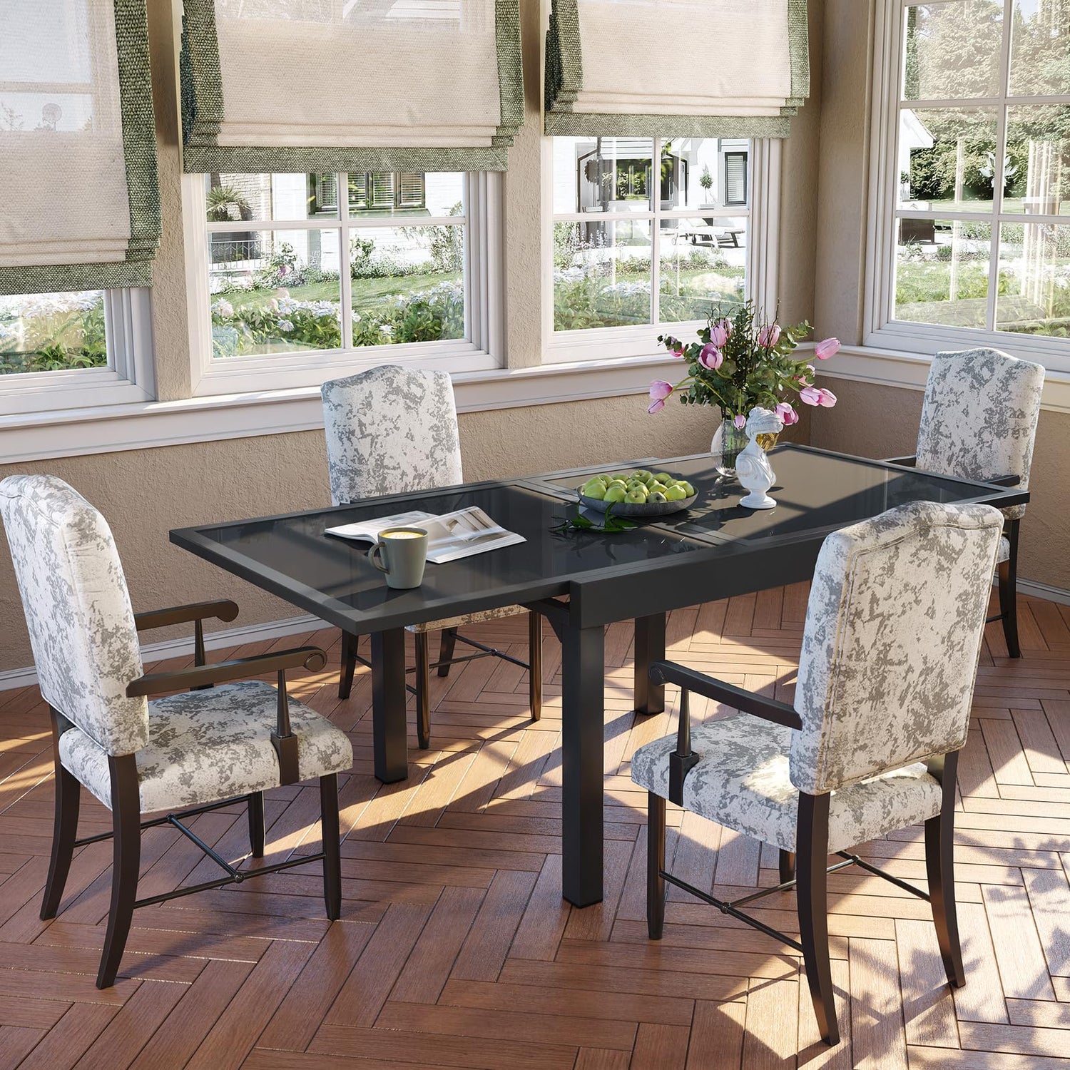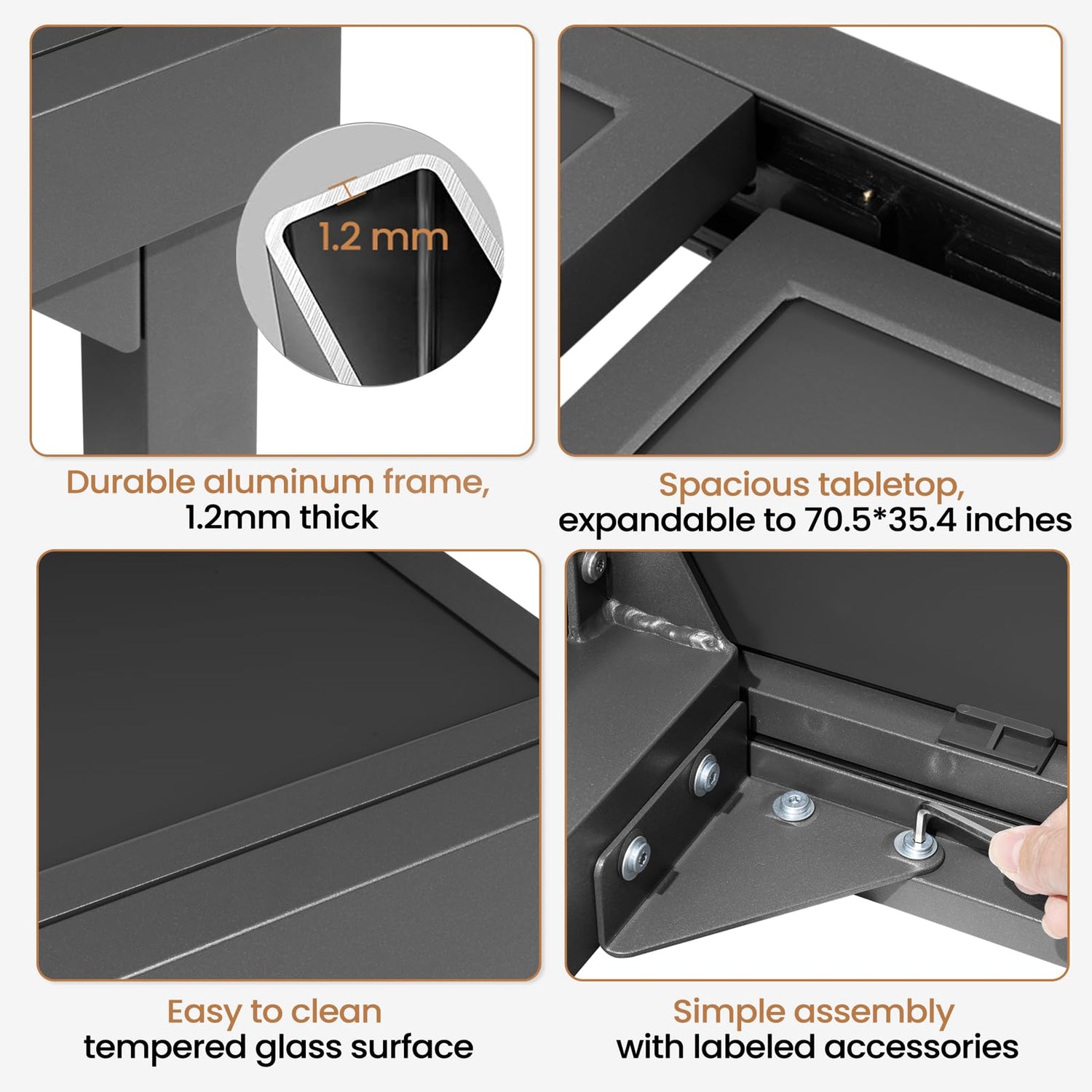PATIOHIT Modern Aluminum Outdoor Dining Table - Expandable Patio Glass Dining Table for 6-8, Extendable Aluminum Patio Extender Table 35" to 70" for Backyard, Porch, Deck, Garden - Dark Grey