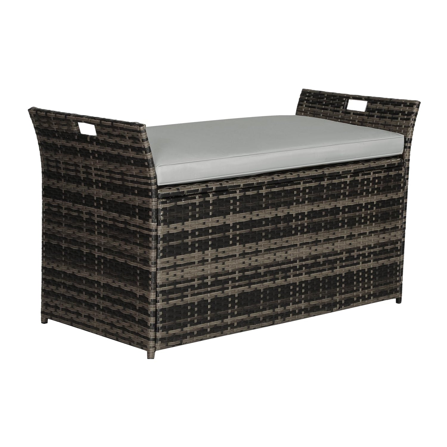 Patiomore 90 Gallon Outdoor Wicker Storage Bench with Cushion, Patio PE Rattan Deck Box with Handles (Gray), Grey
