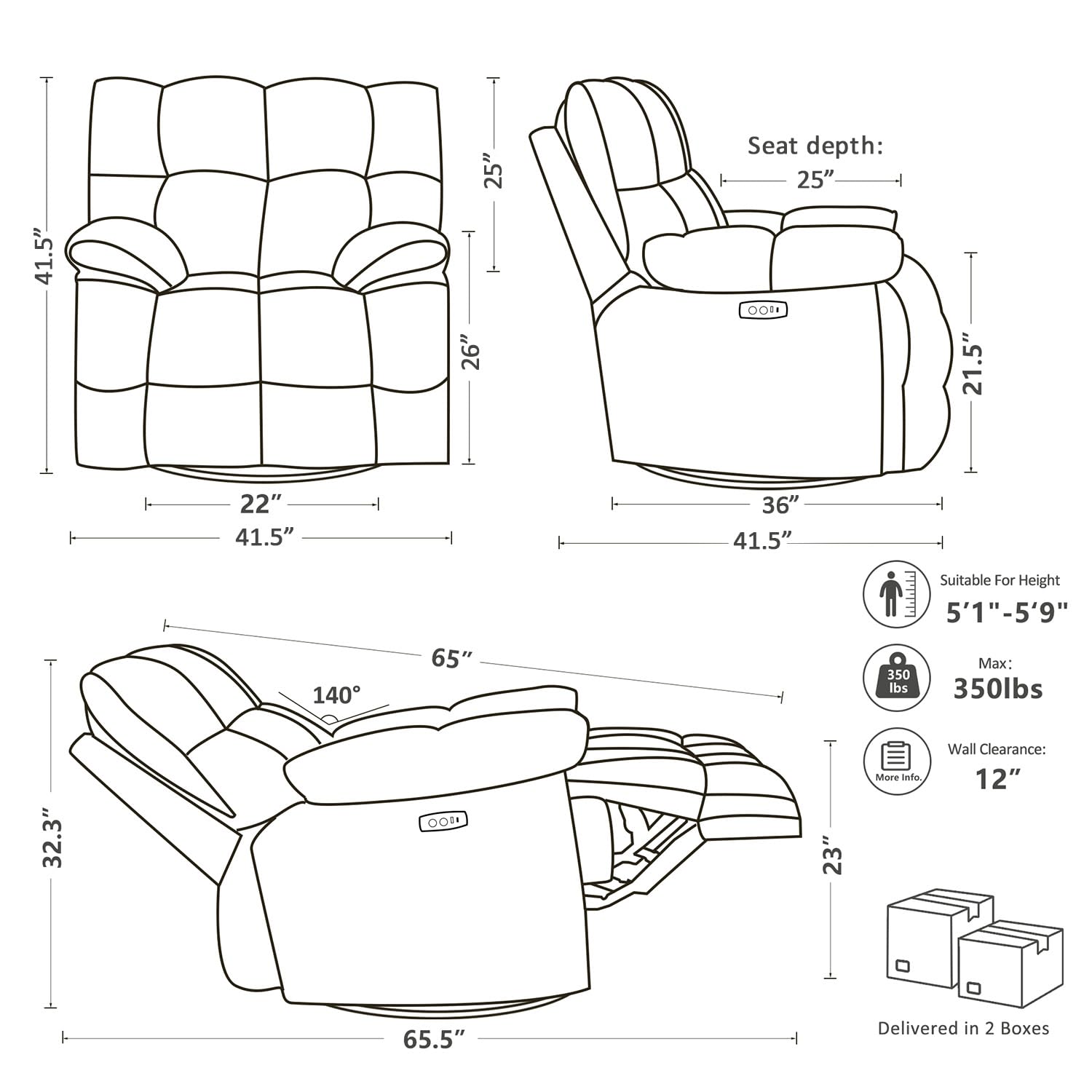 - 【SWIVEL, ROCK, & RECLINE】 - Adjust to your perfect recline or upright position effortlessly with the simple push of two buttons on this electric recliner chair. Equipped with quiet motors for a durable, consistent experience, it's perfect for relaxation or phone use. The built-in USB and Type-C port on the control panel charges your devices conveniently. Ideal for home or office, this cozy recliner offers a 140-degree recline and a 30-degree soothing rocking motion for full-body zero-gravity relaxation. Enjoy the freedom to move in any direction with a 270-degree rotation, providing unparalleled flexibility and ease. A thoughtful gift for yourself or a loved one.