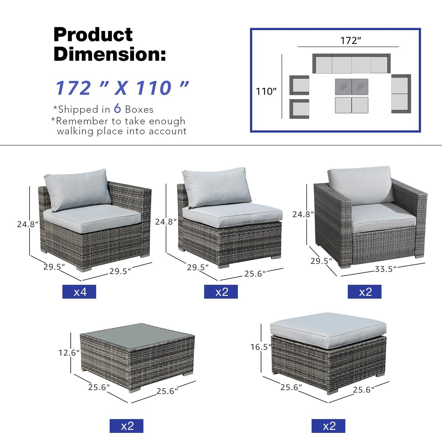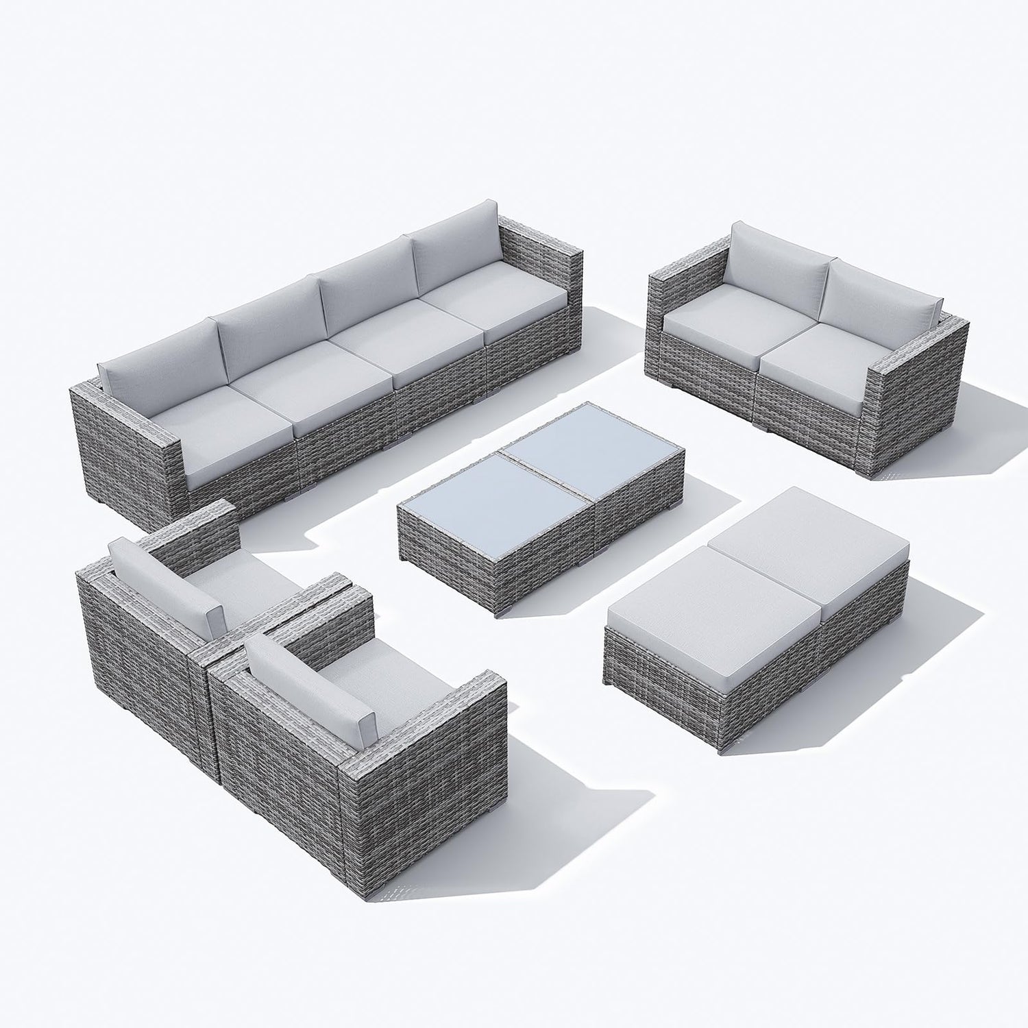 - 👍[Easy to Maintain & Assemble]: Our patio sectional conversation set with tempered glass adds more convenience to cleaning. Patiorama outdoor sofa set includes 2 arm sofas, 4 corner sofas, 2 armless sofas, 2 ottomans and 2 tables. Including the hardware and instruction manual, the outdoor furniture set will be easily assembled in a short time.