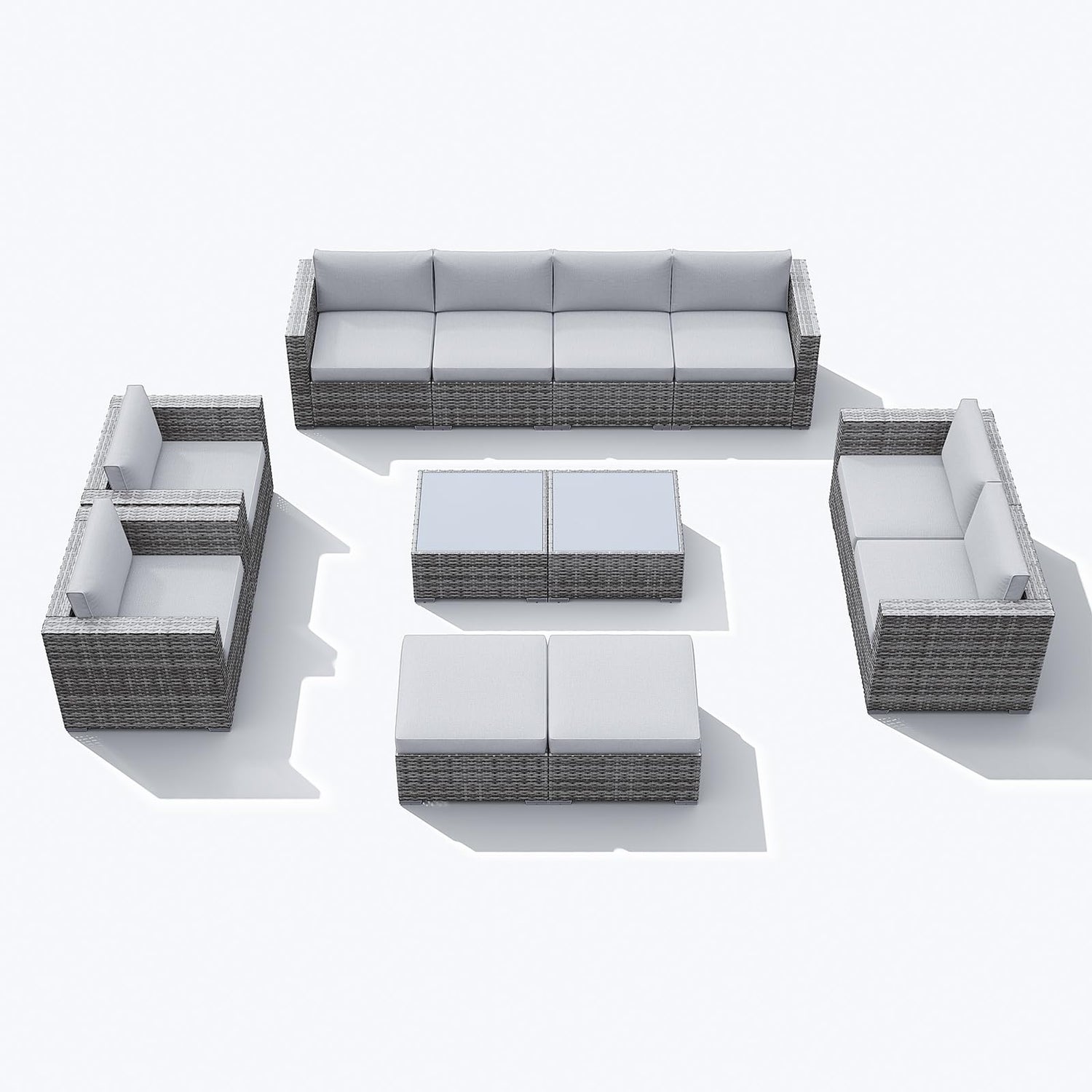 - 🧩[Modular Combination]: Our patio 12-piece furniture set opens up unlimited configurations for any occasion and can be arranged according to your preferences. With a stylish coffee table, this sectional wicker sofa set is delicate and modern. Create a new way for your yard, deck, porch, and other space.