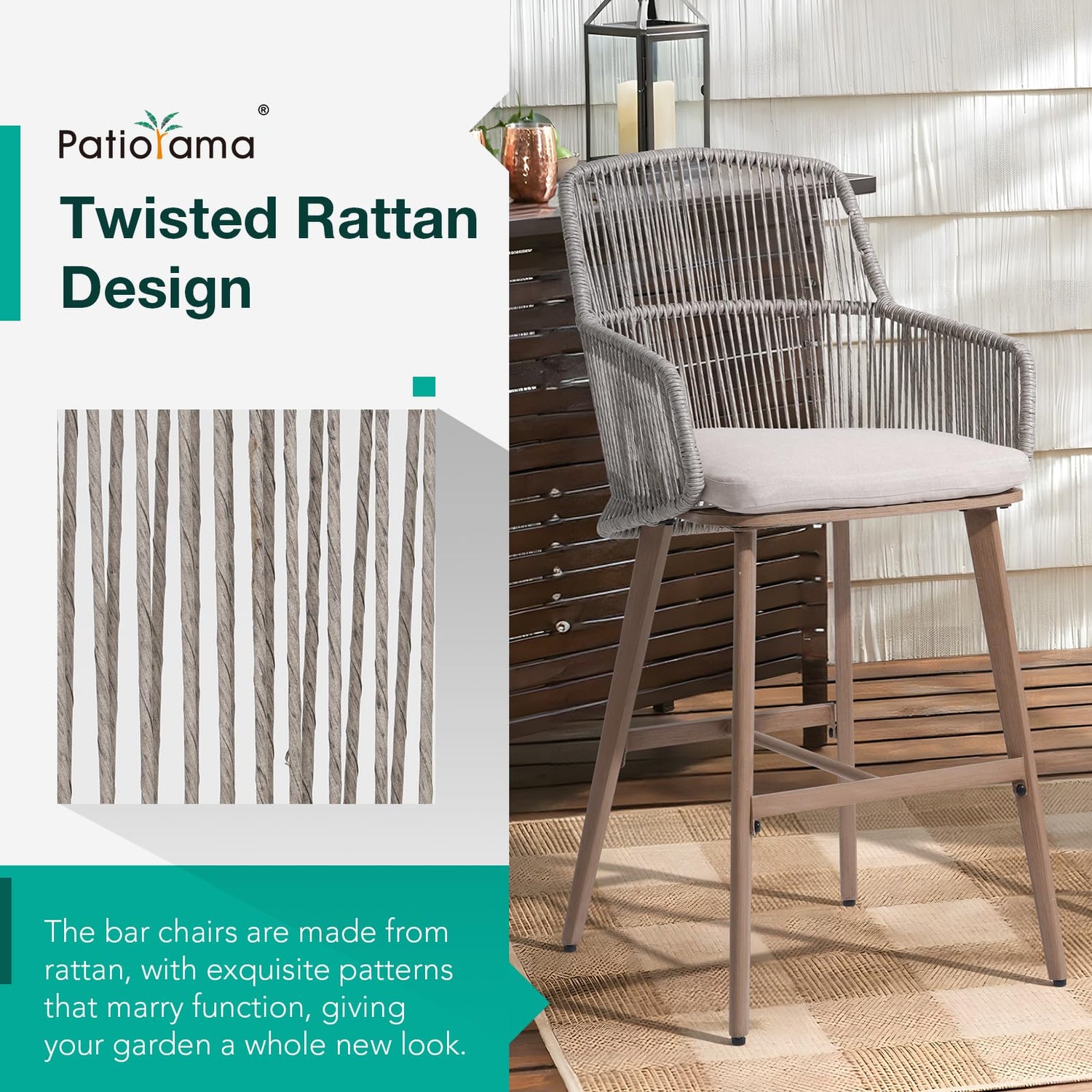 - đ¸ăPremium Material & Stylish Wooden Grain Finishă: Our wicker dining chair features a robust e-coated metal frame with a stylish wooden grain finish, offering the durability of metal while adding the warmth and aesthetic appeal of natural wood. The twisted design of handwoven wicker adds a chic, modern touch to your outdoor setting, also provides good breathability, and is suitable for long-term use.