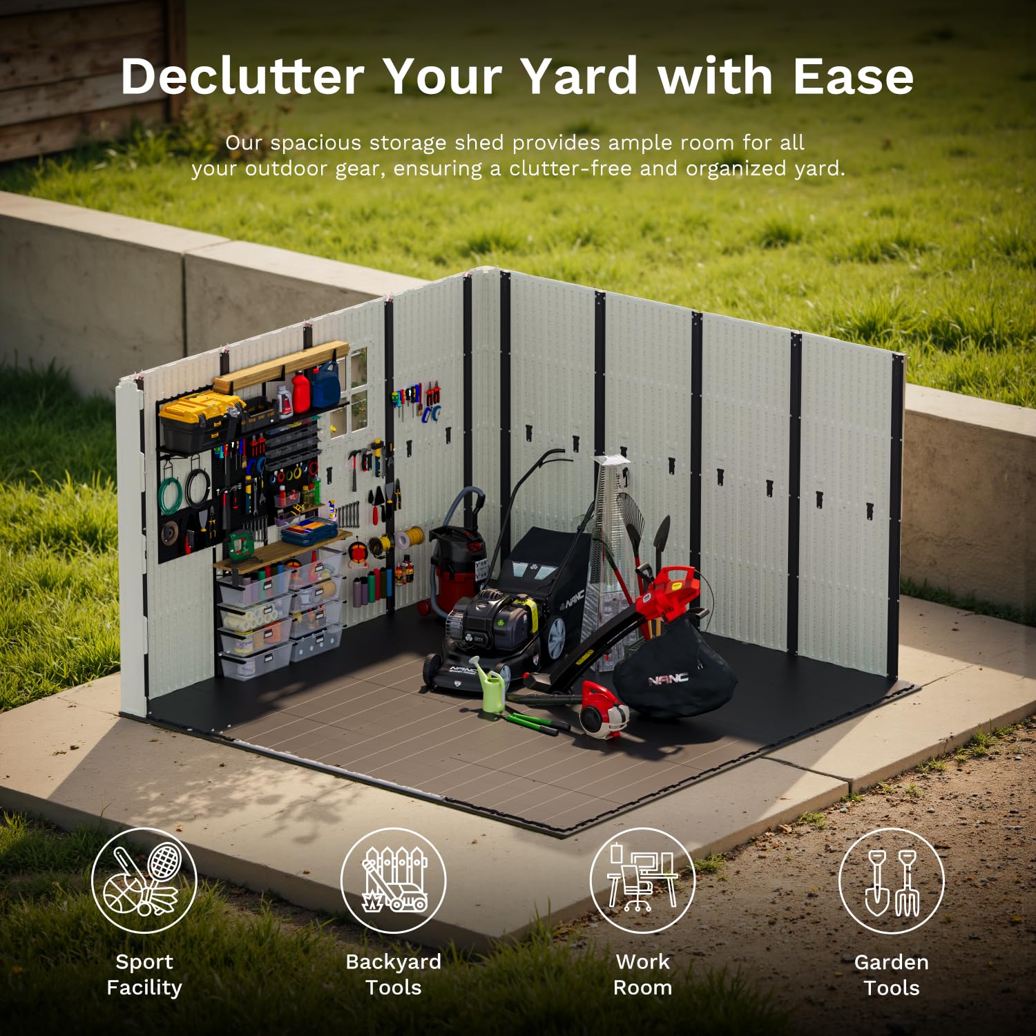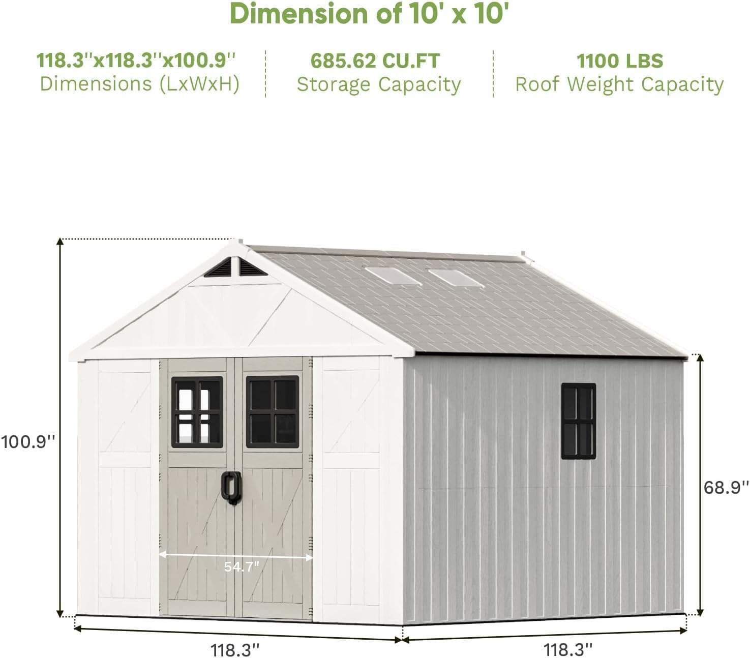 - All-Around Storage Space: The resin shed offers a spacious 10x10 FT area, ideal for storing ladders, gardening tools, bicycles, and more. Its versatile layout can easily transform into a pet house or a large outdoor shed for tools.