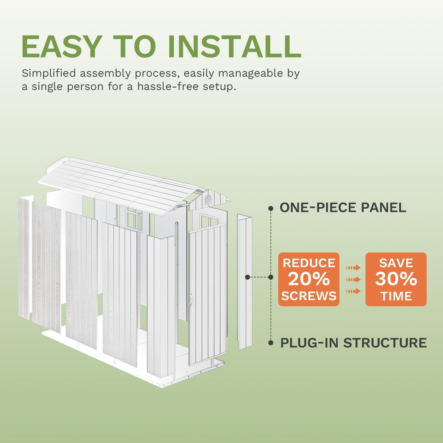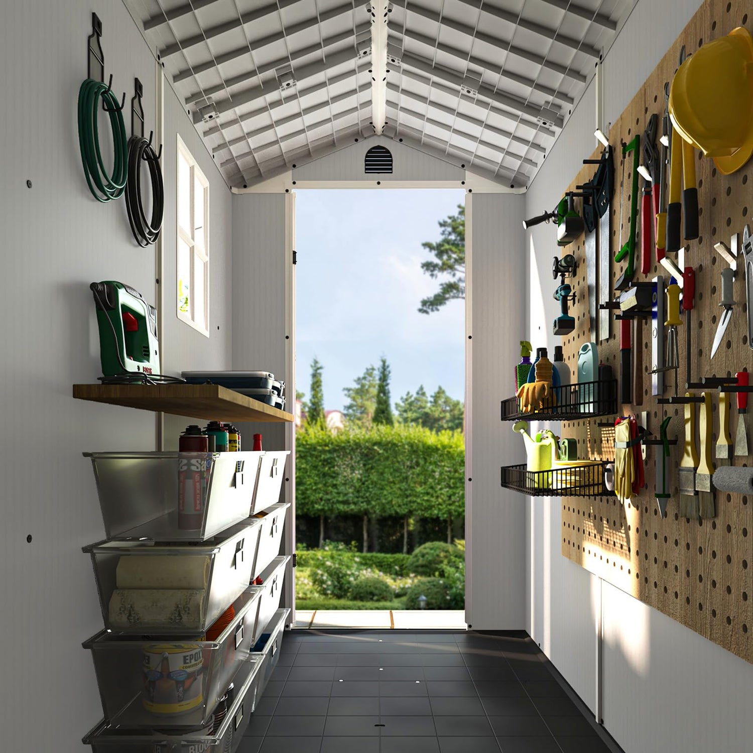 - Stable floor base: This shed is built with resin floor base to keep stability, ensuring you a long-lasting, reliable storage solution for all your tools and equipment.
