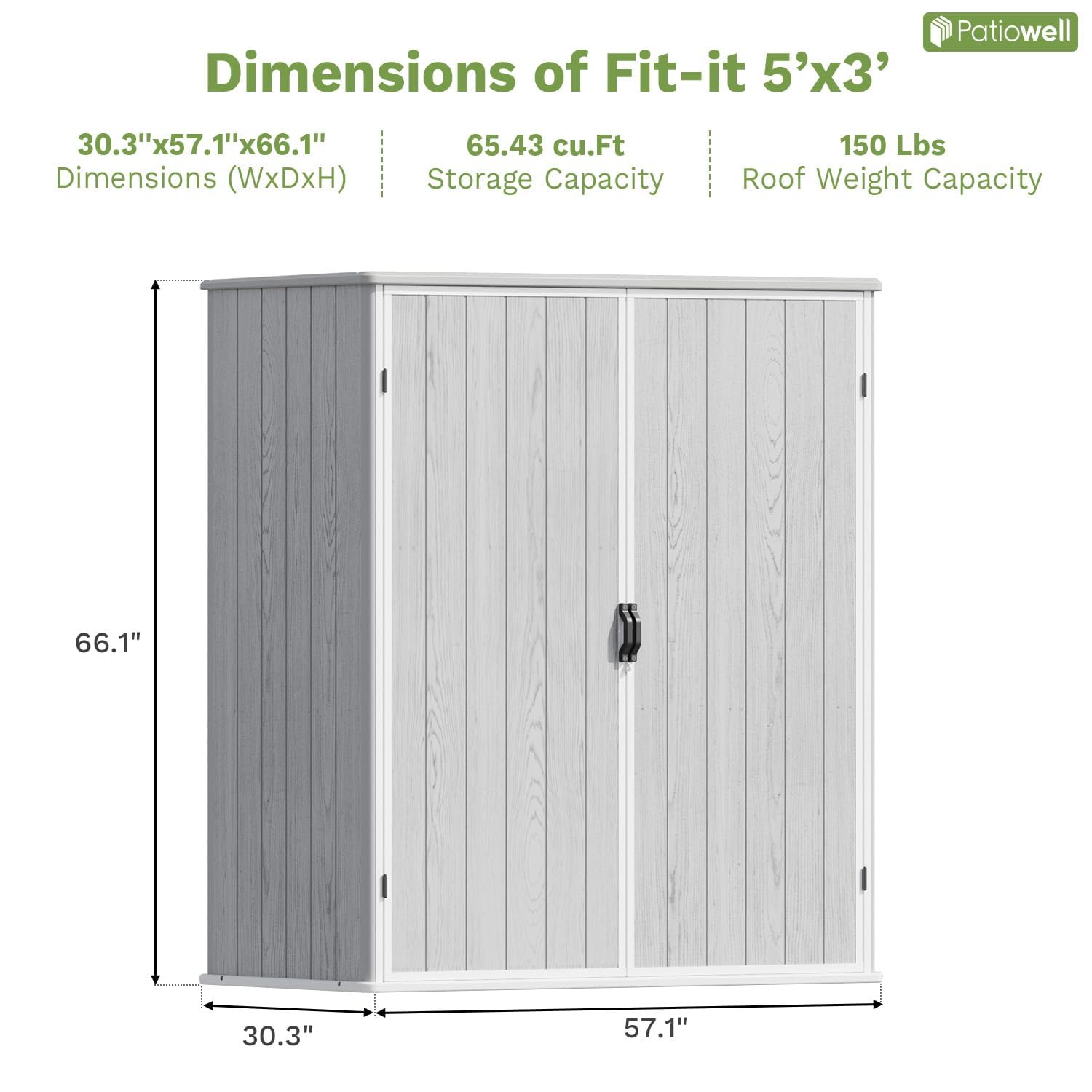 Details: Patiowell Outdoor Storage Cabinet Shed; Weatherproof Resistant; Versatile 5x3ft Organizer