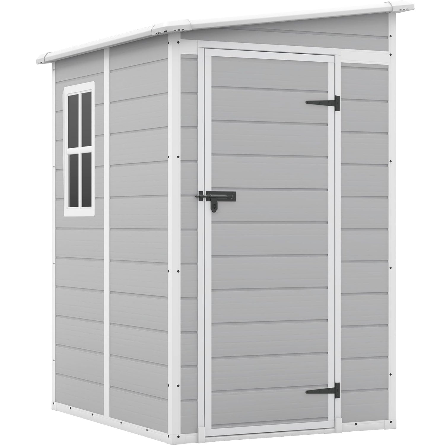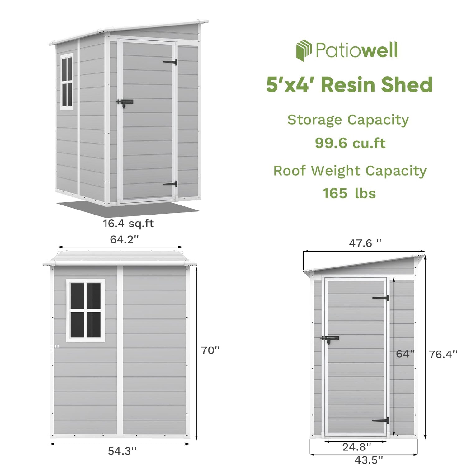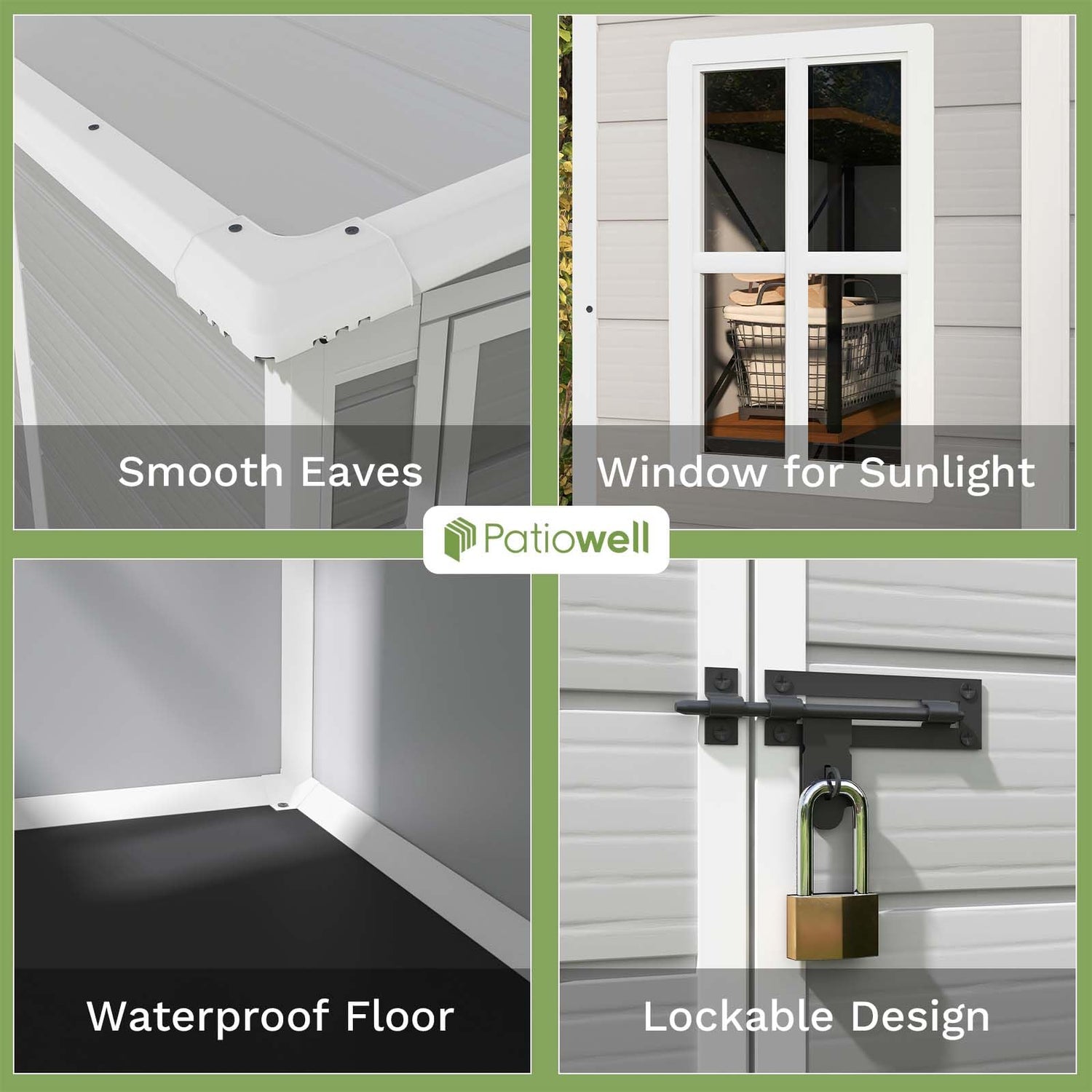 Patiowell 5x4 FT Outdoor Storage Shed, Resin Storage Shed with Floor & Lockable & Window Door for Patio Furniture, Garden Tools and Bicycle, White & Grey