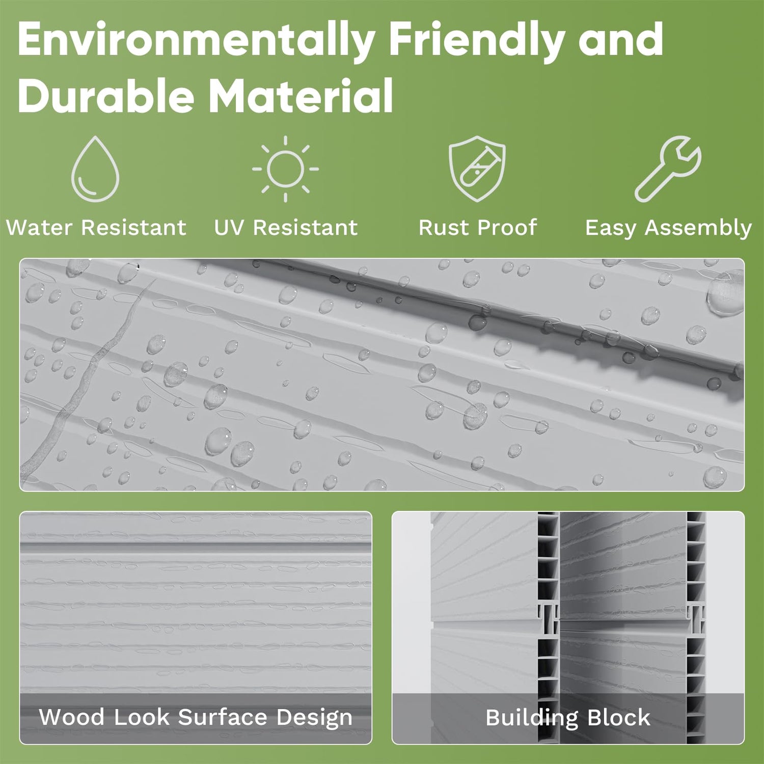 - 【Decorate Your Yard】Featuring a neutral color palette and a sleek, modern design, this storage shed seamlessly blends into any outdoor setting. Whether placed in your backyard, patio, or garden, it enhances the aesthetic appeal while serving its practical purpose.
