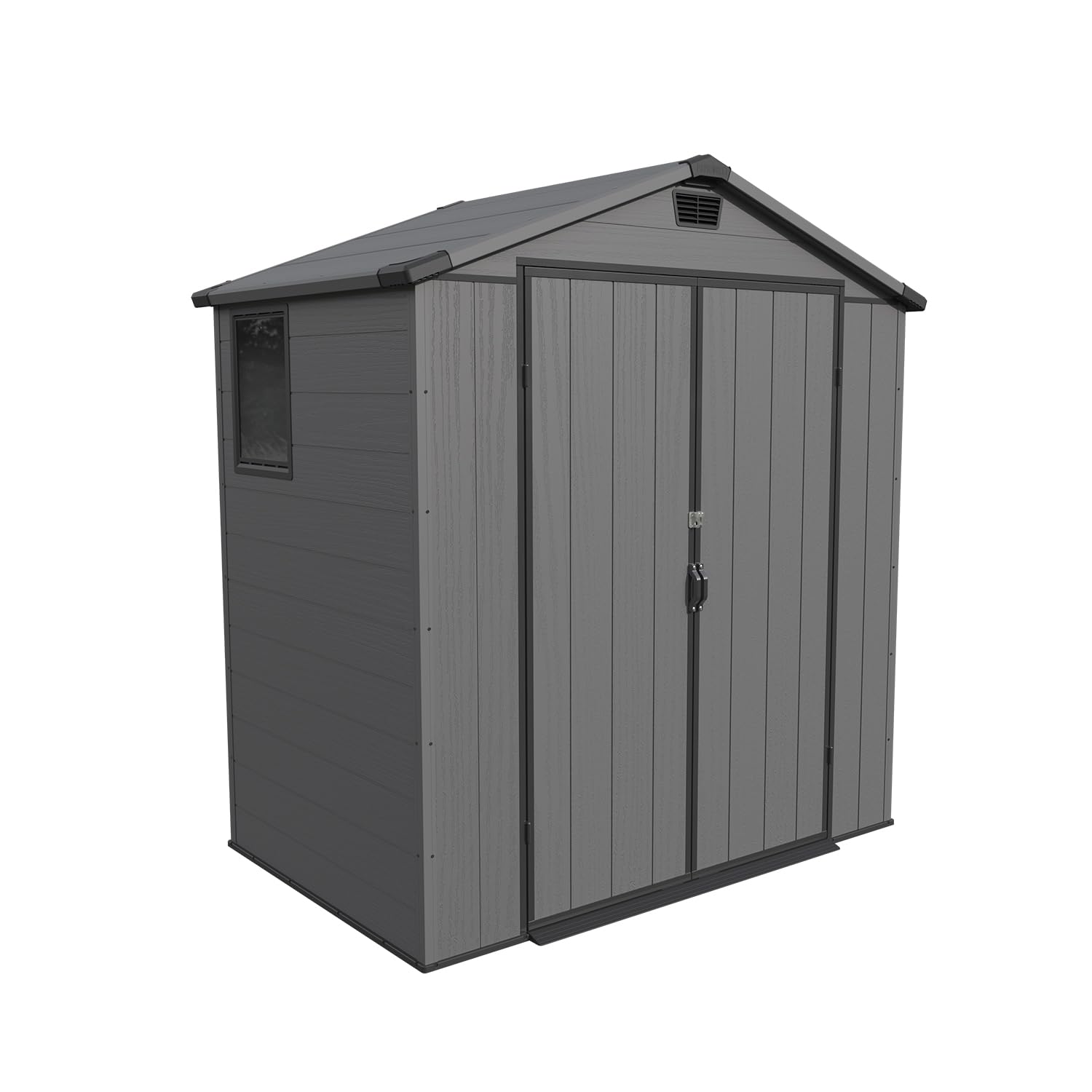 Patiowell 6 x 4 FT Plastic Outdoor Storage Shed with Floor, Resin Outside Tool Shed with Window and Lockable Door for Backyard, Garden, Tool Storage Use, Easy to Install, Dark Grey
