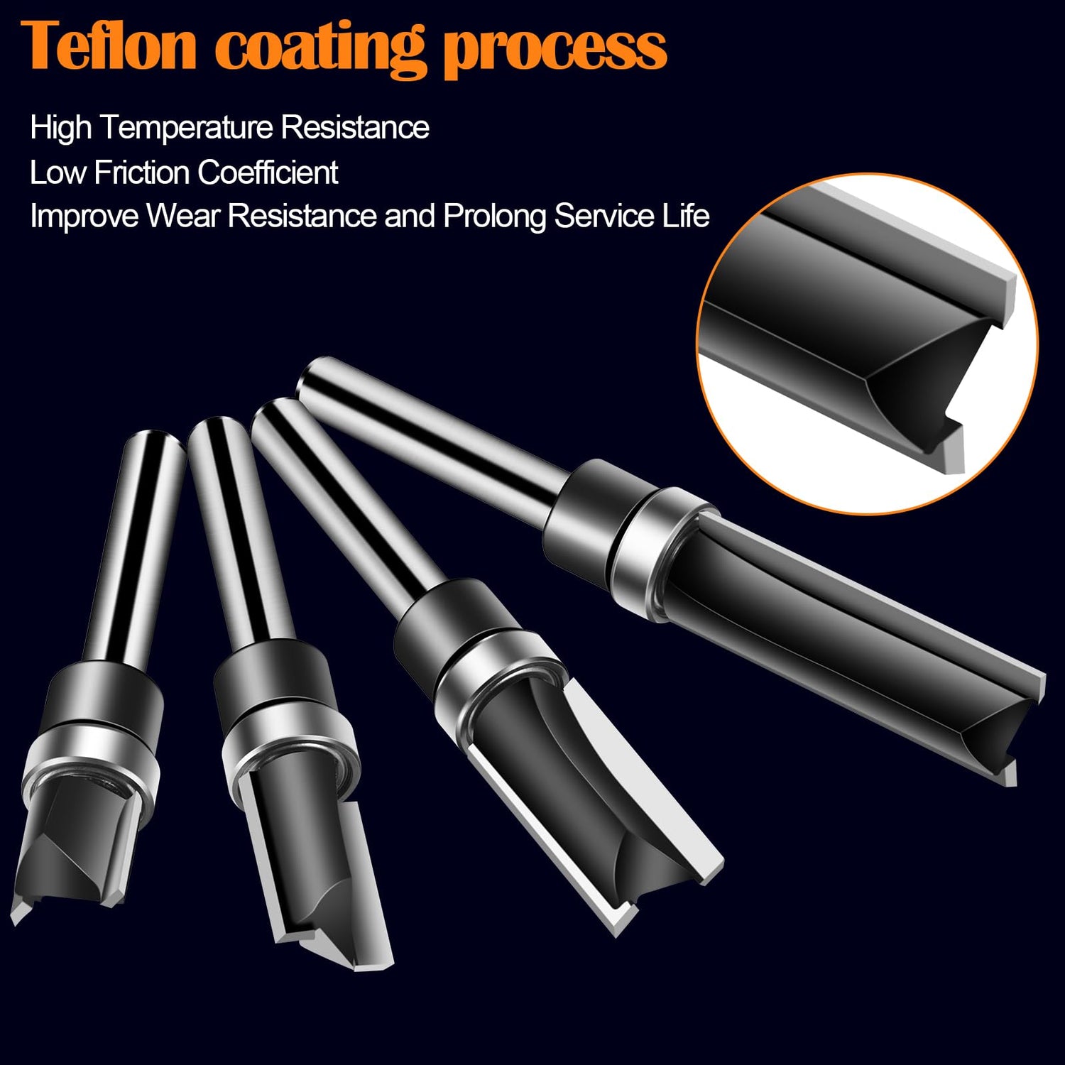 - 【Upgraded YG6X carbide blades】Langskip's 1/4-inch shank flush trim router bits feature YG6X carbide blades that have undergone heat treatment for optimal durability and stability. All the tool heads in the set are coated with heat-resistant Teflon.