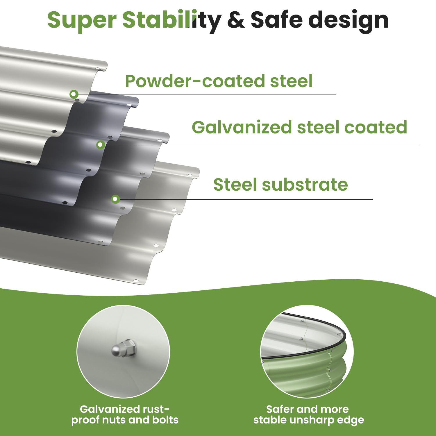 • Safety design: We offer a rubble seal to protected top edge of garden from being sharp. Environmentally friendly paint is used, which does not pollute the soil and provides a healthy growth environment for plants.