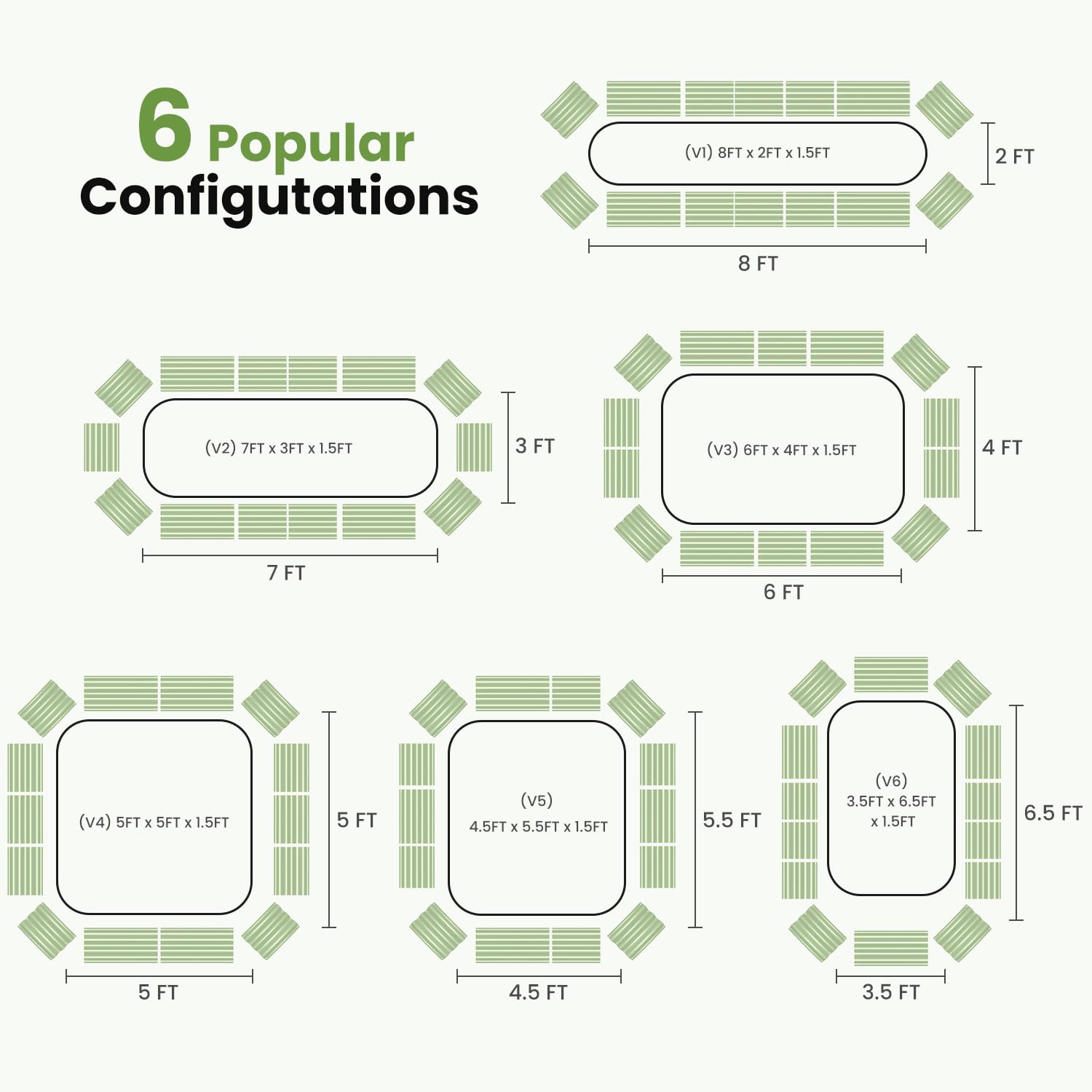 • Standard size and popular color: The raised garden bed is 8x2x1.5ft, with 4 bent panel, 6*1FT and 4*1.5FT straight panels. You can assemble them into 31 possible configurations to fit your plants, and choose your optimal configuration based on the layout of your gardening area. Two steel support bars help the panels keep their shape, preventing warping and soil leakage over time.