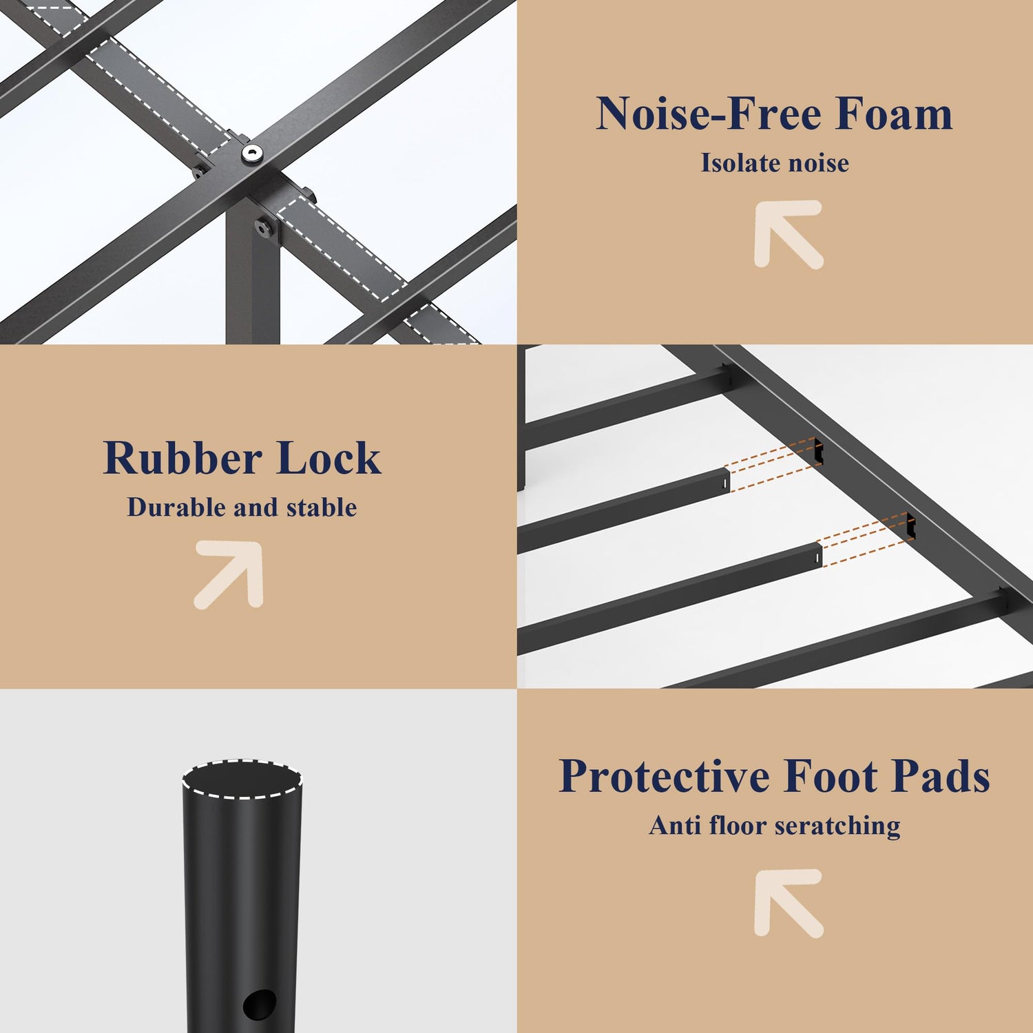 - 【Strong, Durable, Stable and Noiseless】: The four-poster bed frame is supported by 12 sturdy slats, which are connected by EVA sponge and quiet buckles, effectively preventing the slats from rubbing and making noise. Provide you with a quiet sleeping environment.